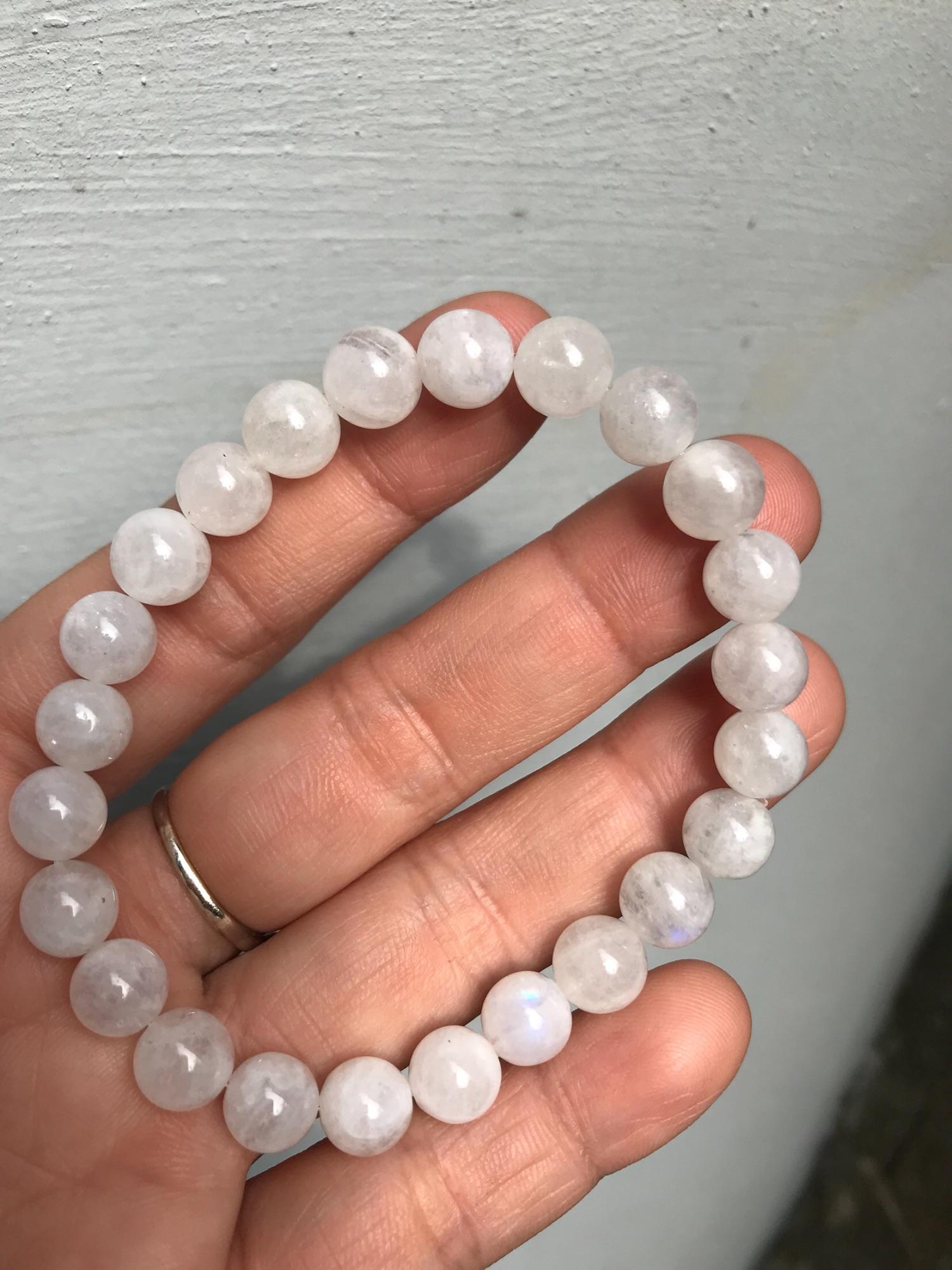 Vòng moon trắng tự nhiên 8mm hay đá ánh trăng trắng trong đẹp Shop Hàng Phong Thủy Sunny Q8 #moon