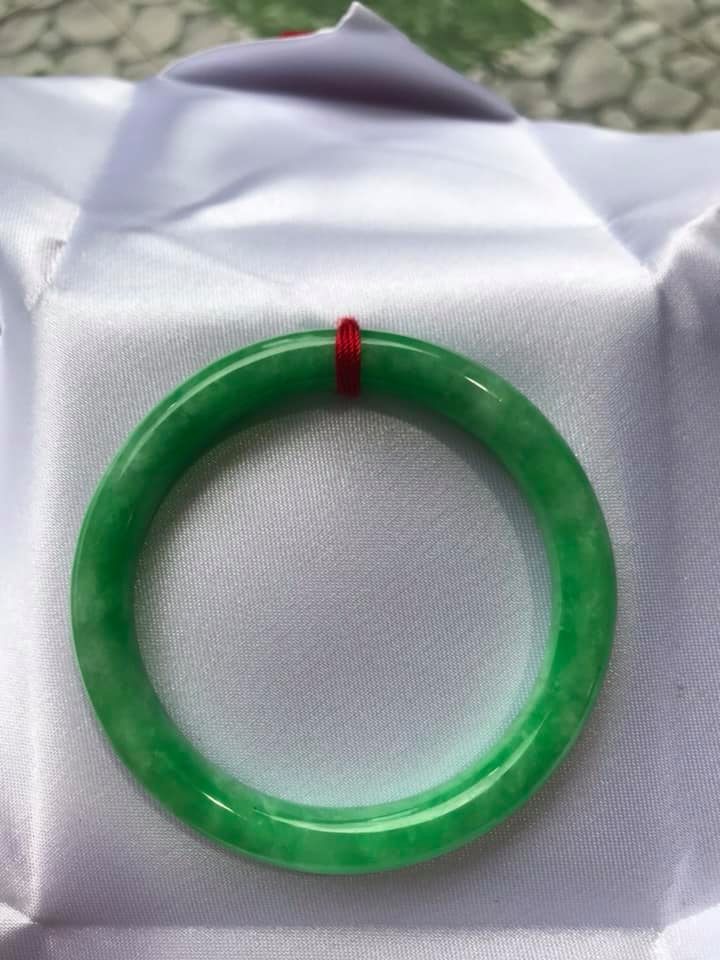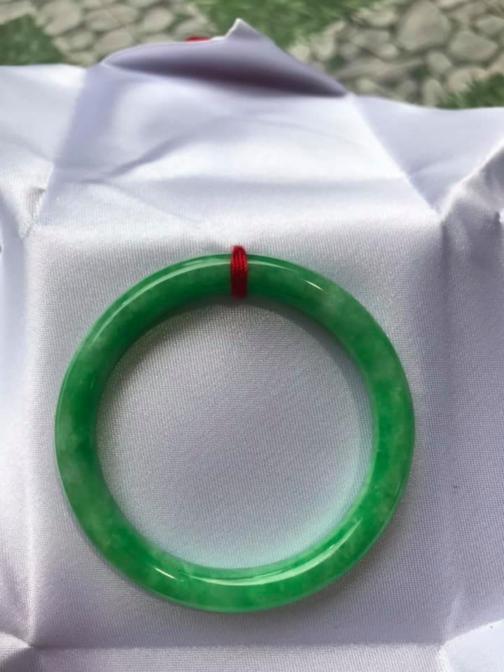 ✨Vòng Tay Đá Cẩm Thạch Đậu Đẹp size 48mm x dầy 7mm Màu Xanh Lá Đậu Bóng Rất Là Đẹp Nữ tay nhỏ Nữ mệnh mộc hỏa thủy 35kg - 49kg đeo ạ