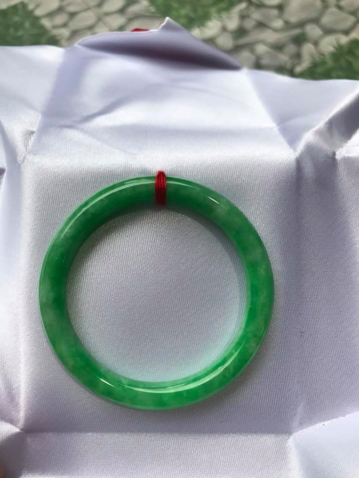 Vòng cẩm thạch Xanh đậu đẹp size vòng ni 48mm x cọng 7mm nữ tay nhỏ 35kg - 48kg / Shop Sunny Quận 8