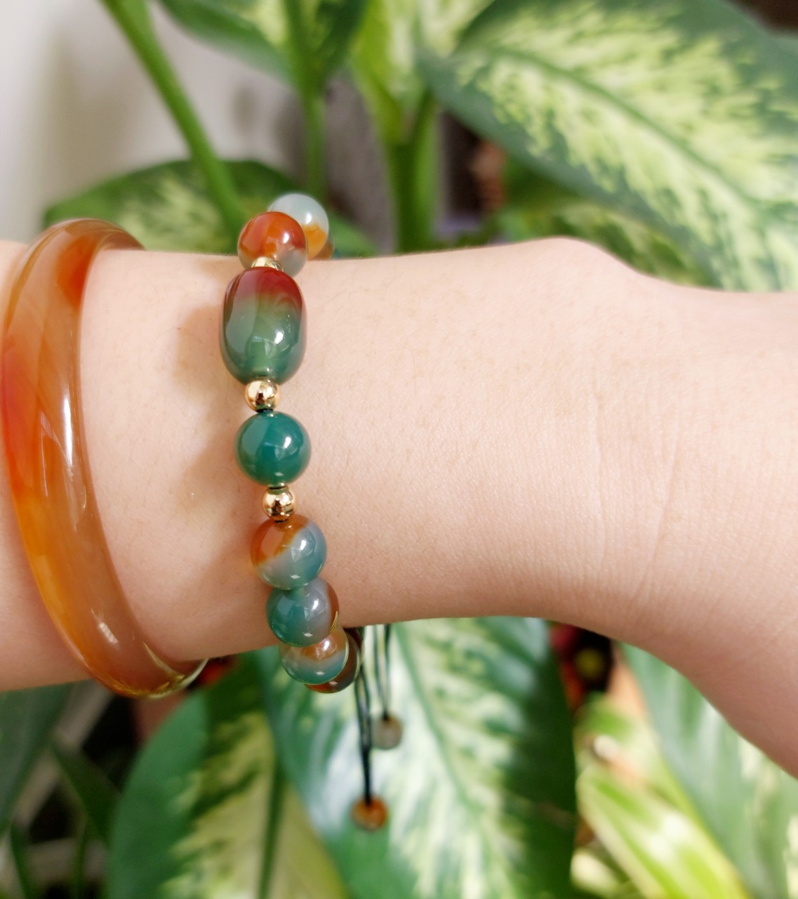 VÒNG TAY ĐÁ MÃ NÃO TỨ QUÝ MÀU ĐẸP NI57 NỮ 55kg Đến 68kg Đeo 480k - PHONG THUỶ SUNNY QUẬN 8