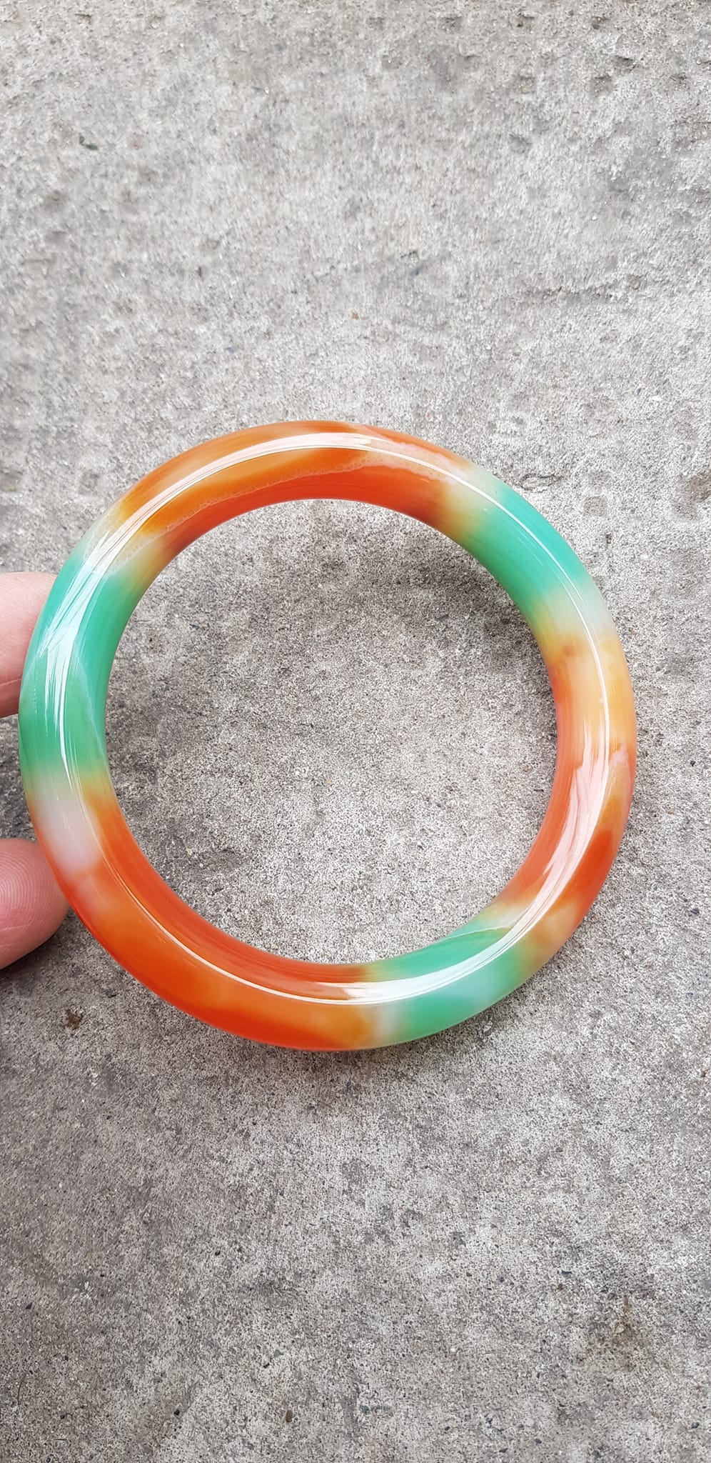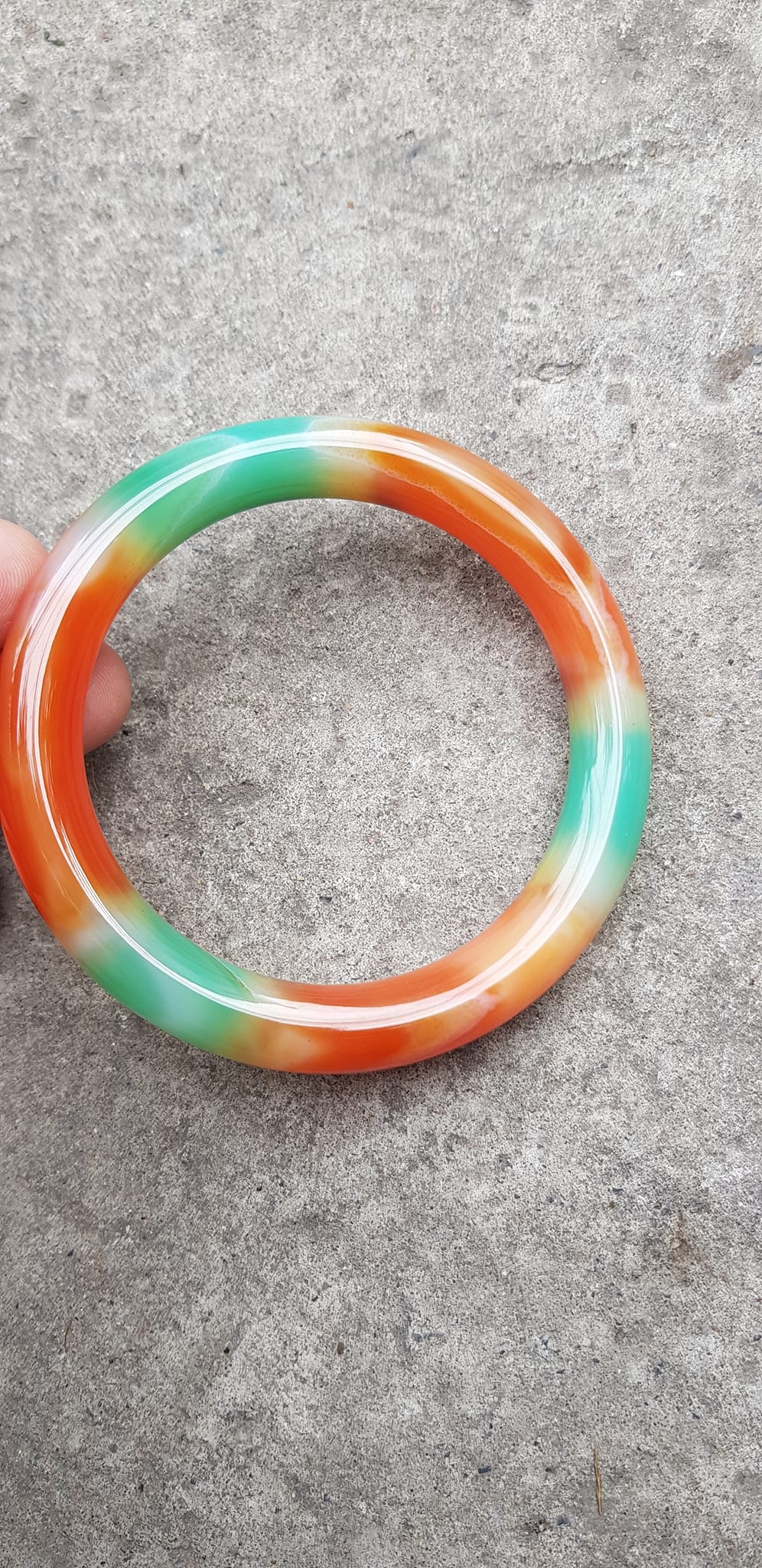 Vòng tay Nữ đá mã não đỏ cam trắng Ni 56mm x chột to 9mm trắng đỏ cam nhẹ 1 bên vân Nữ 55kg-63kg đeo