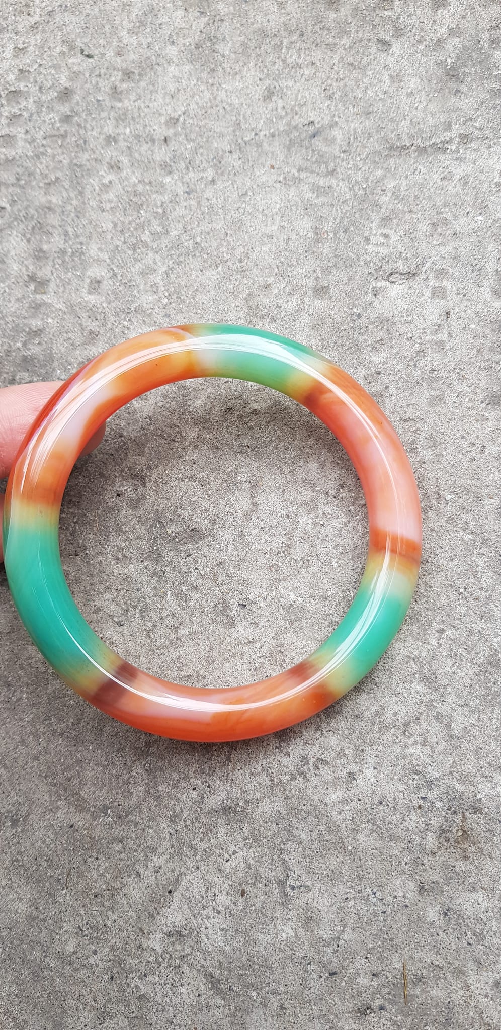 Vòng tay đá mã não tứ quý mới chột to đẹp quá Ni 57mm x chột 10mm Nữ thích đeo vòng chột to 55kg - 65kg đeo ạ Vòng màu xanh ngọc cam đều lam