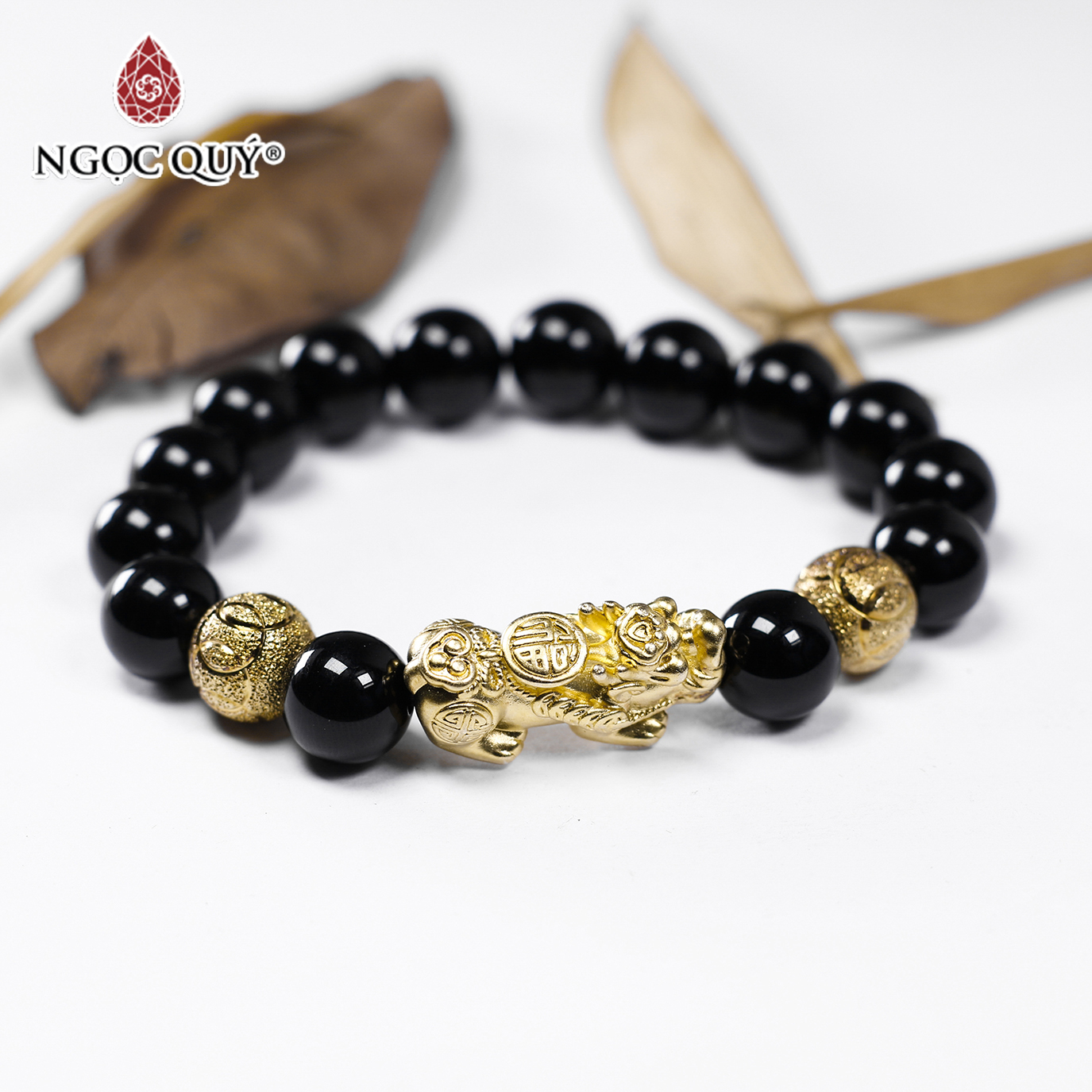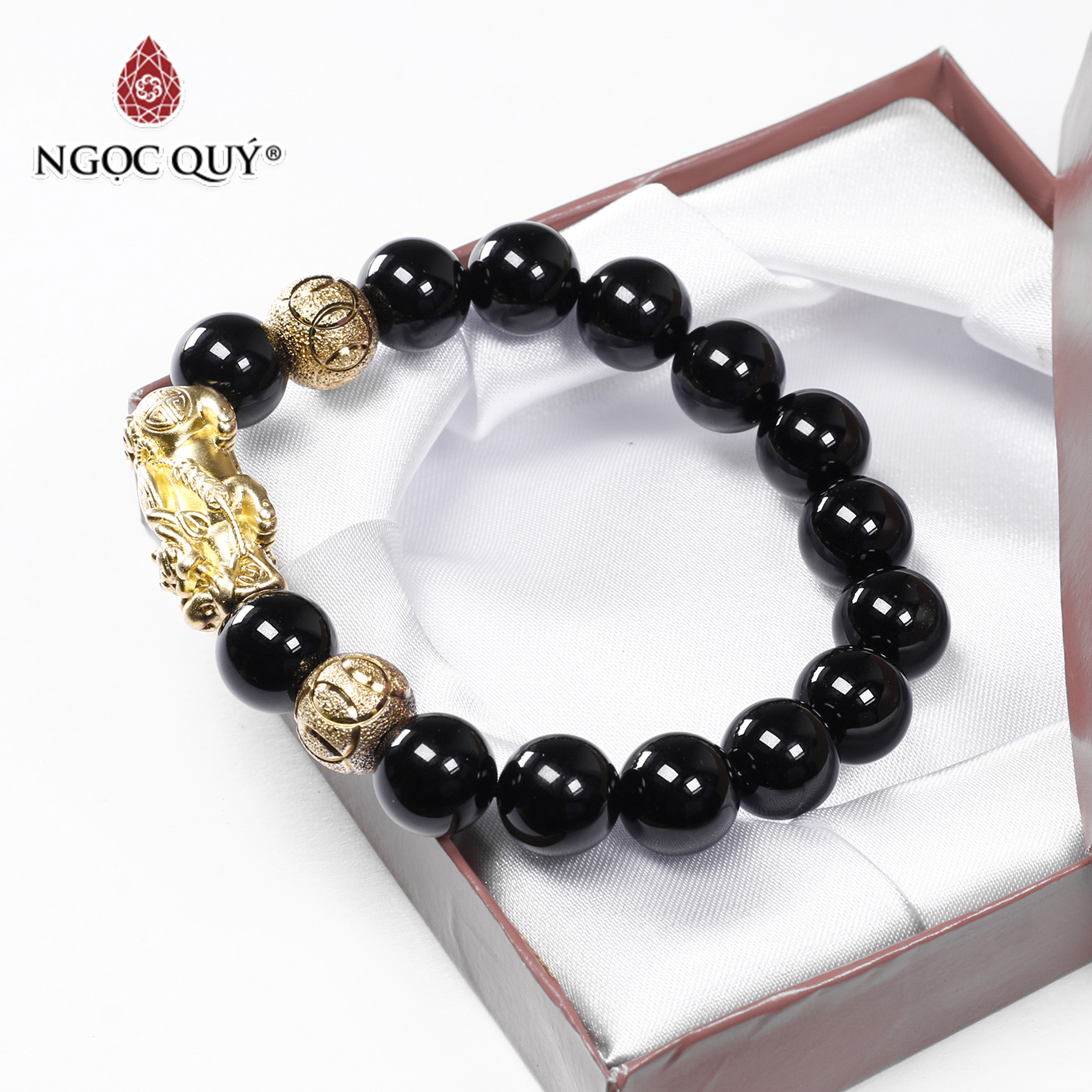 Vòng Tay Nam Đá Obsidian Phối Tỳ Hưu Bạc Mạ Vàng 24K Ngọc Quý Gemstones - Đá thủy tinh núi lửa (Obsidian) là một dạng khoáng vật vô định hình, chúng được hình thành do