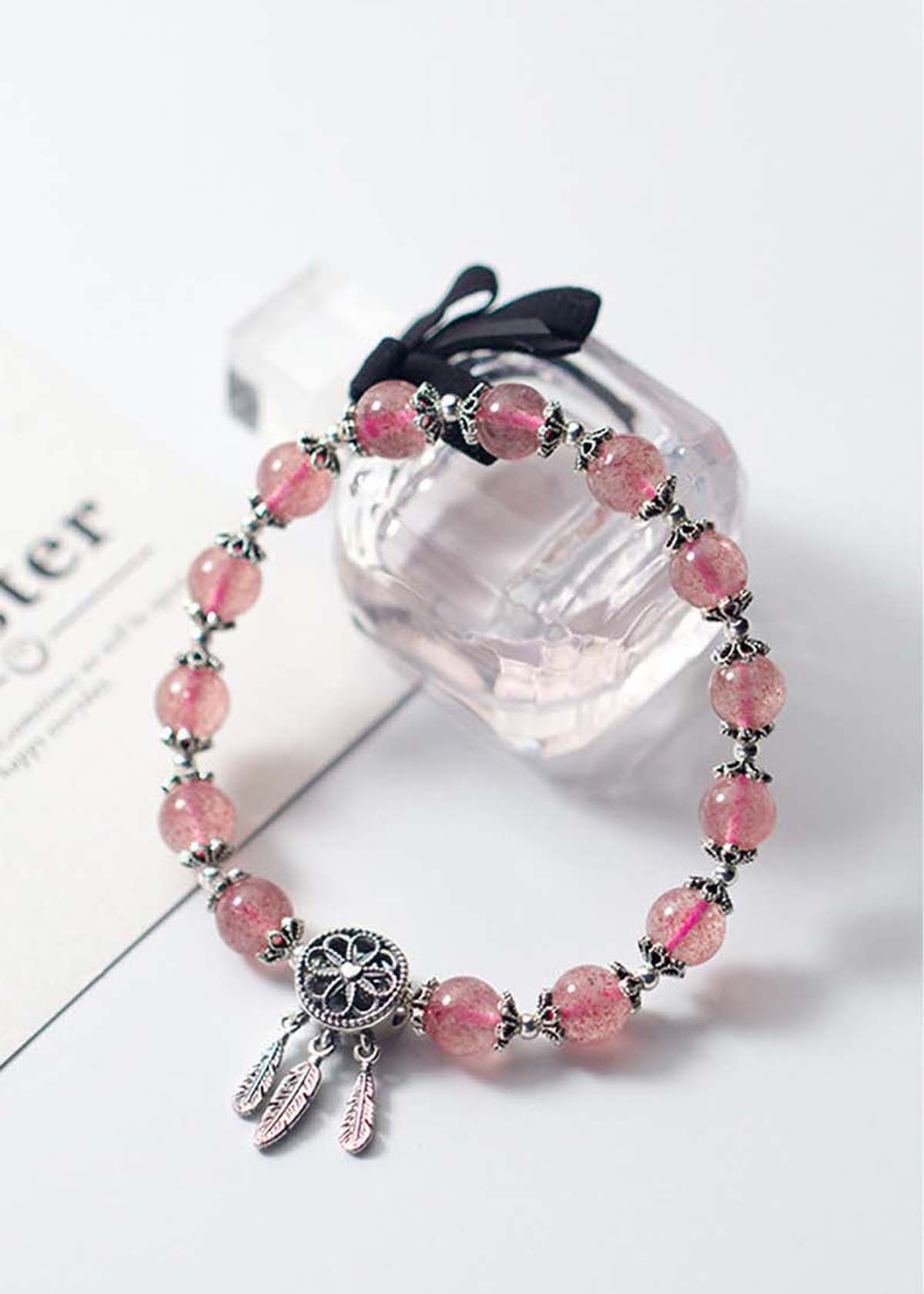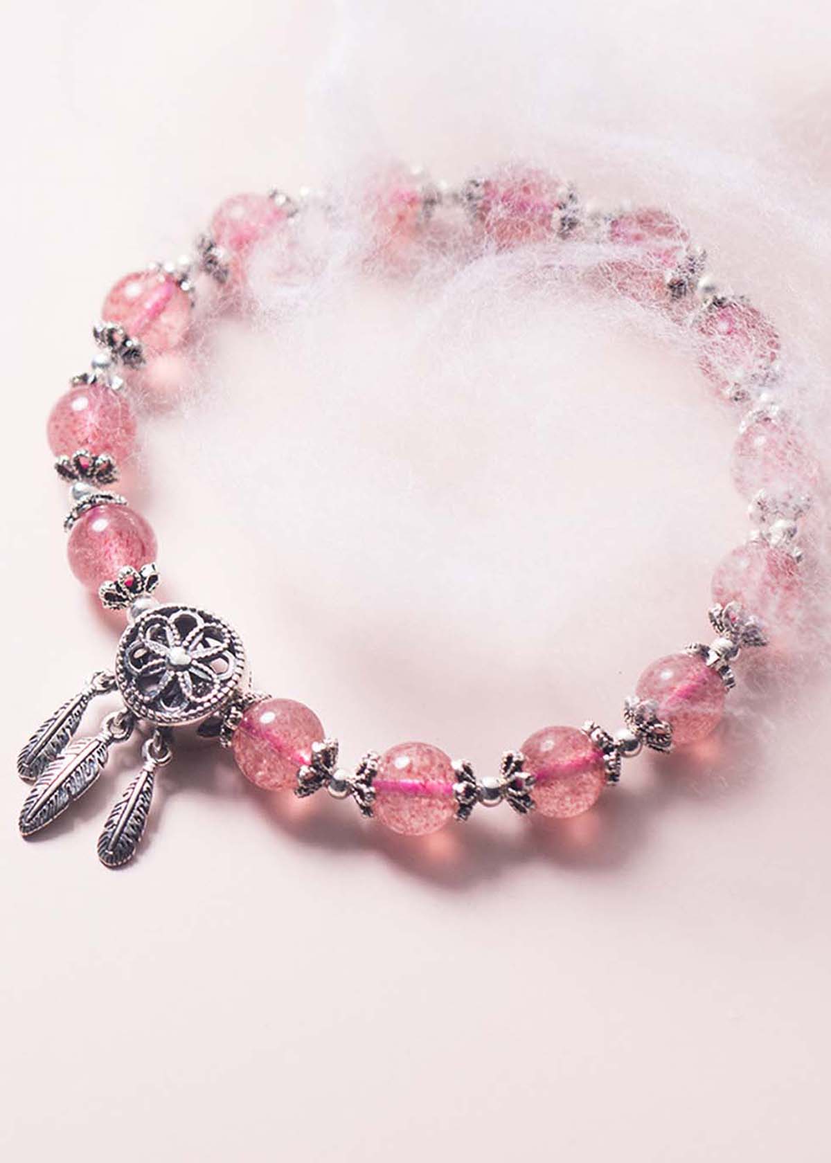 ✨Vòng tay đá thạch anh dâu phối Dreamcatcher mệnh hỏa, thổ - Ngọc Quý Gemstones