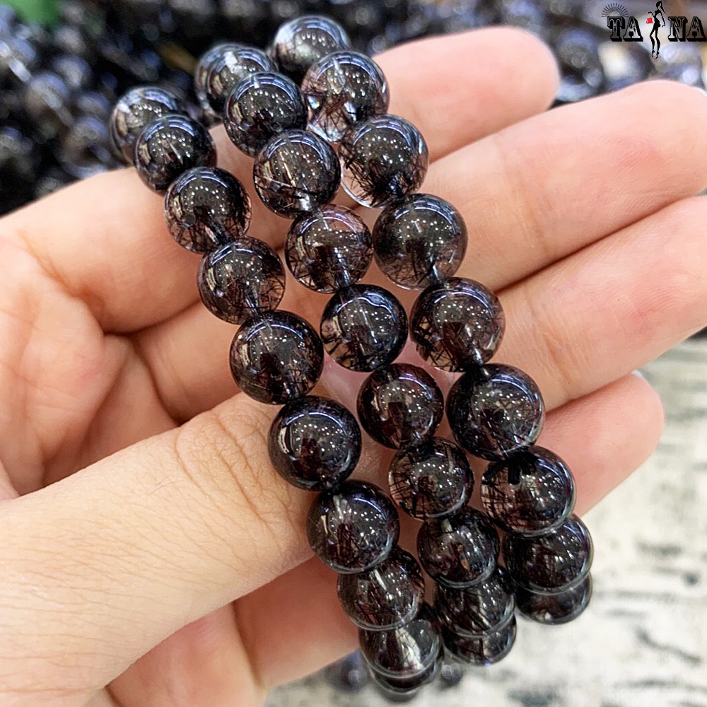 Vòng tay đá thạch anh tóc đen cao cấp rất phù hợp với những người mệnh Thủy và mệnh Mộc