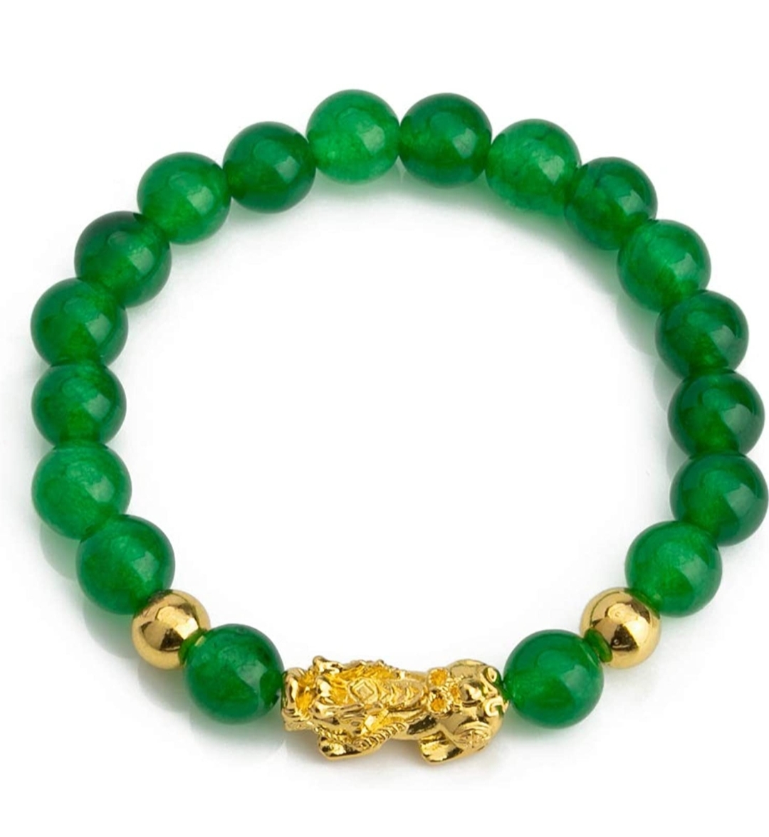 ✨Vòng tay đá thạch anh xanh lục gắn tỳ hưu 10mm