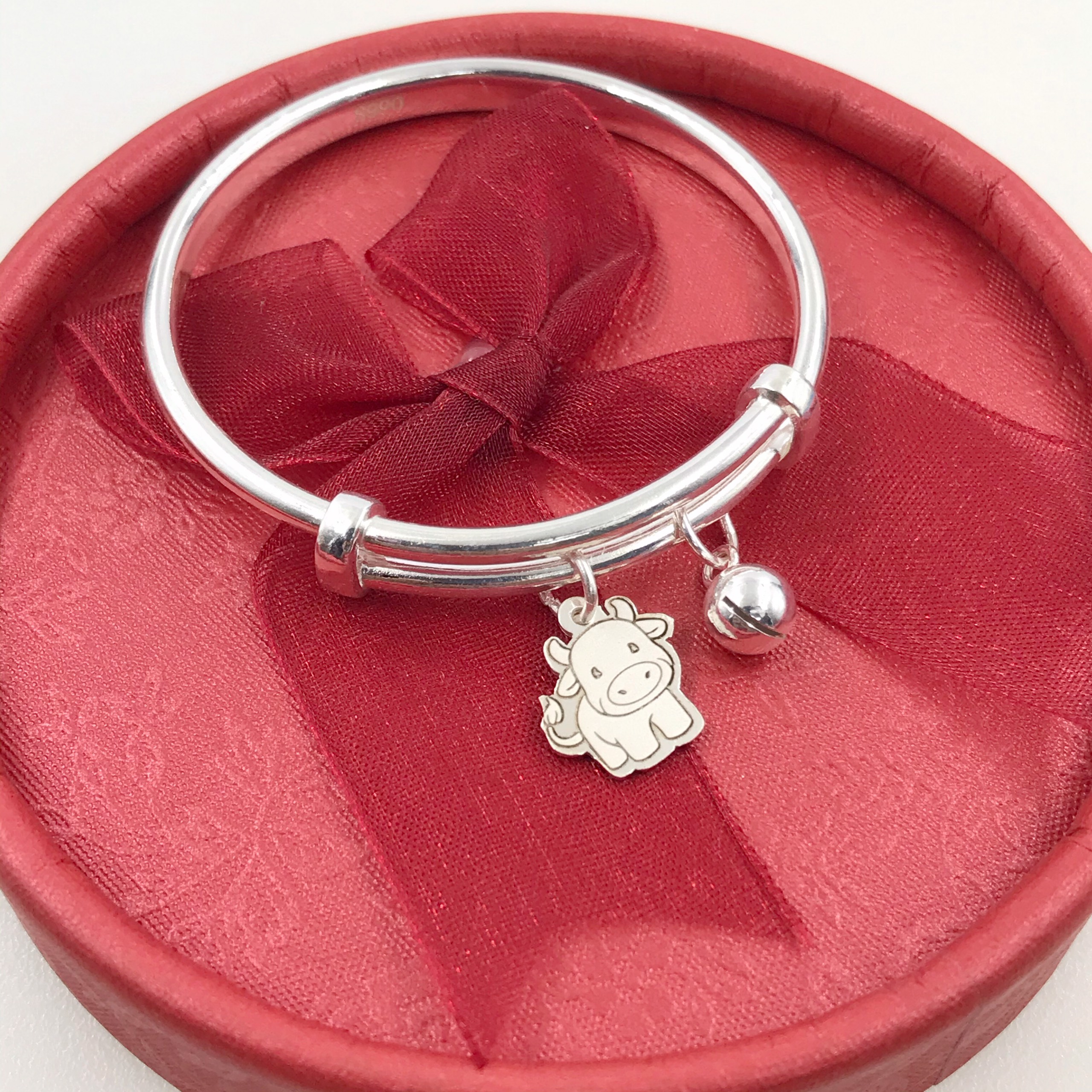 ✨Vòng Tay Lắc Tay Cho Bé Bạc S99 Nguyên Chất Chuông Bóng Và Bé Trâu LTE522 Điều Chỉnh Size