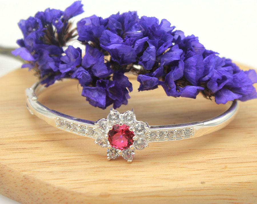 ✨Vòng Tay, Lắc Tay Nữ BẠC HIỂU MINH LTU314 Dạng Kiềng Hoa Đá Đỏ Lấp Lánh