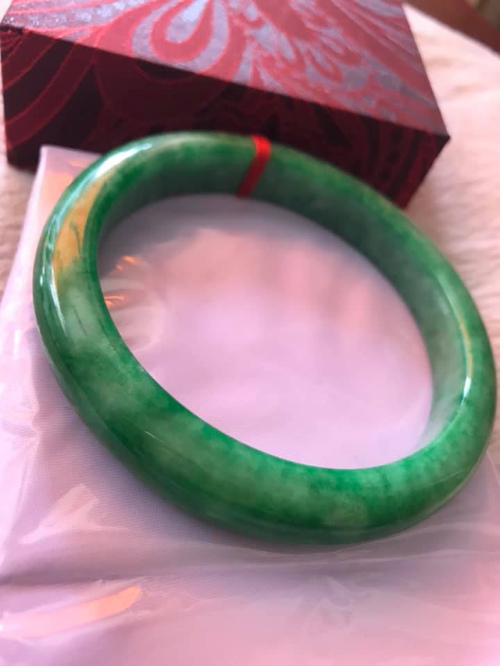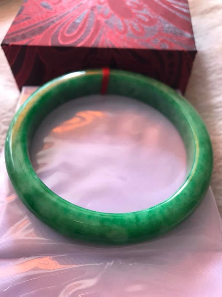 💌Vòng Tay nữ Cẩm Thạch Lý Nở 53mm x Dầy 7,2mm Màu Xanh lá Tươi bóng đều đẹp hợp Nữ mệnh Mộc Hỏa ạ