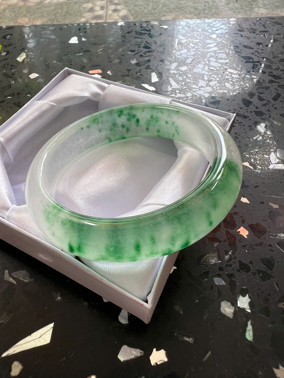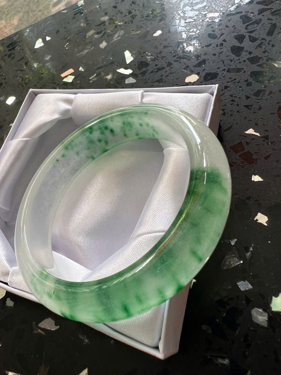 Vòng tay Nữ Đá Cẩm Thạch mới TR Lý 57 mm x cọng 7,5mm Màu Xanh lý tươi trắng 2 bên đều vòng đẹp Nữ 55kg - 64kg đeo đẹp món quà tặng chính mình