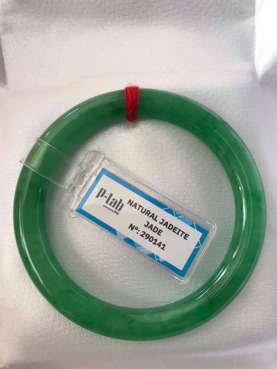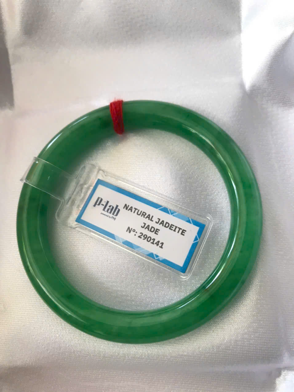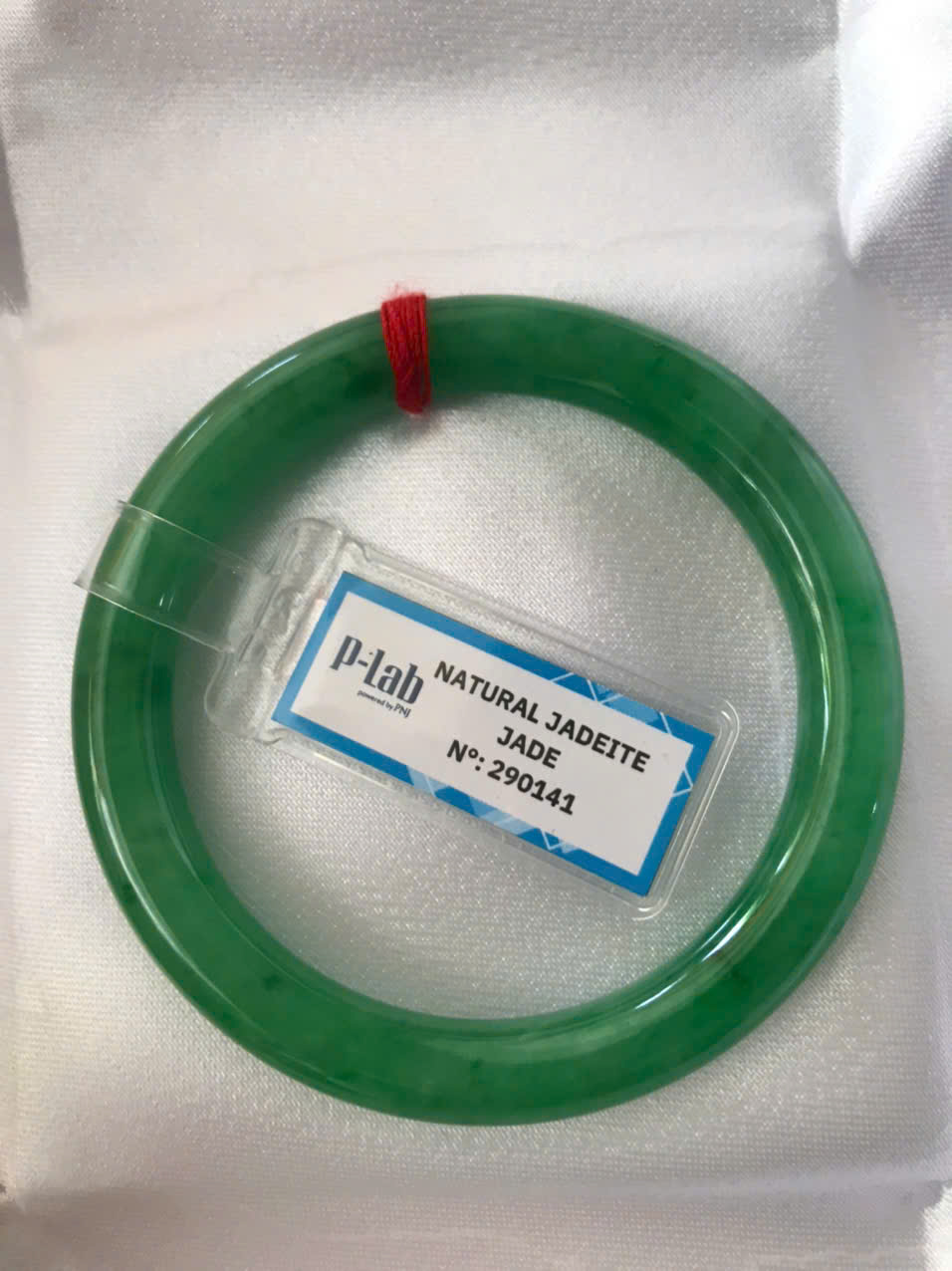 *** Vòng kiểm định P Lab No 290141 Màu Xanh lý đậm đều bóng đẹp nữ 50kg - 54kg đeo ạ