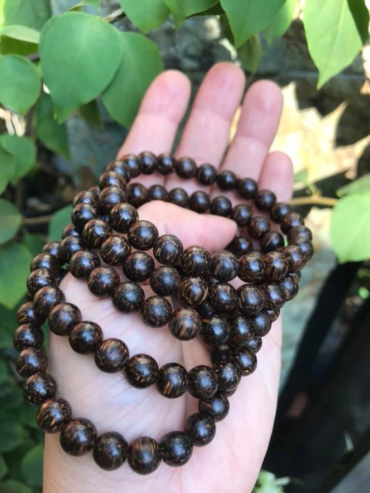 VÒNG CHUỖI ĐEO TAY NỮ GỖ TRẦM HƯƠNG SIZE 8MM MÙI THƠM NHẸ MÀU NÂU VÂN GỖ TRẦM TỰ NHIÊN ĐẸP 220K/1V