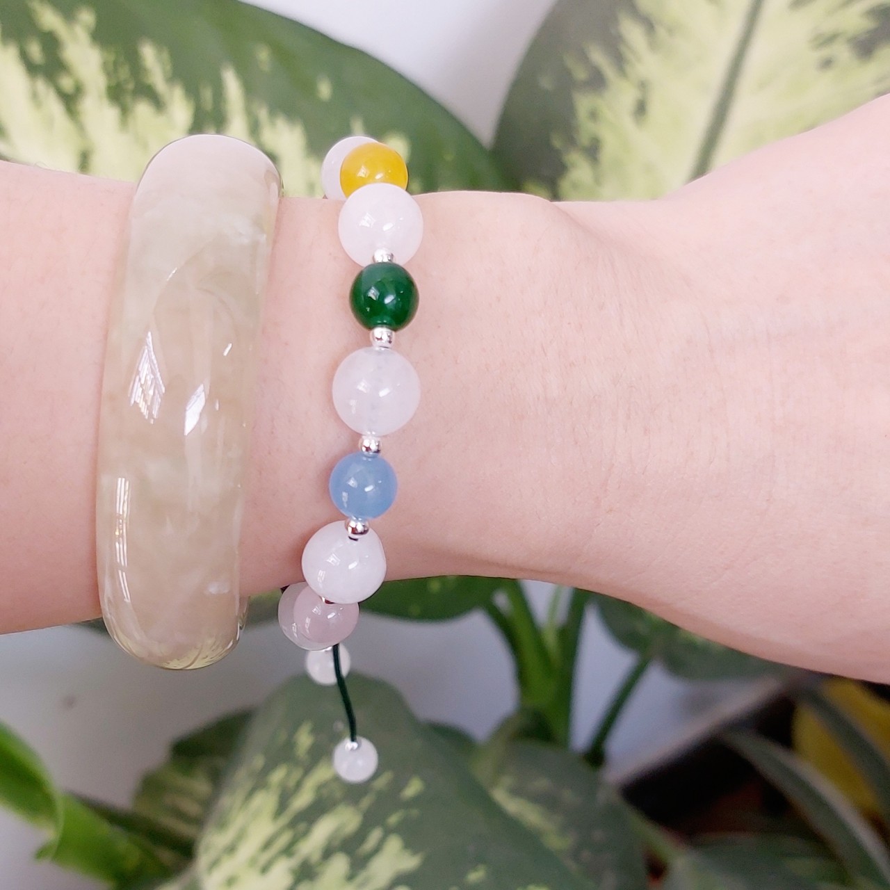 Chiếc Vòng Beryl đa sắc màu tự nhiên hạt size 9mm màu sáng bóng thiệt đẹp rẻ ạ Vòng tay chuỗi Beryl tự nhiên đa sắc màu tươi sáng bóng mượt đẹp size hạt 9mm