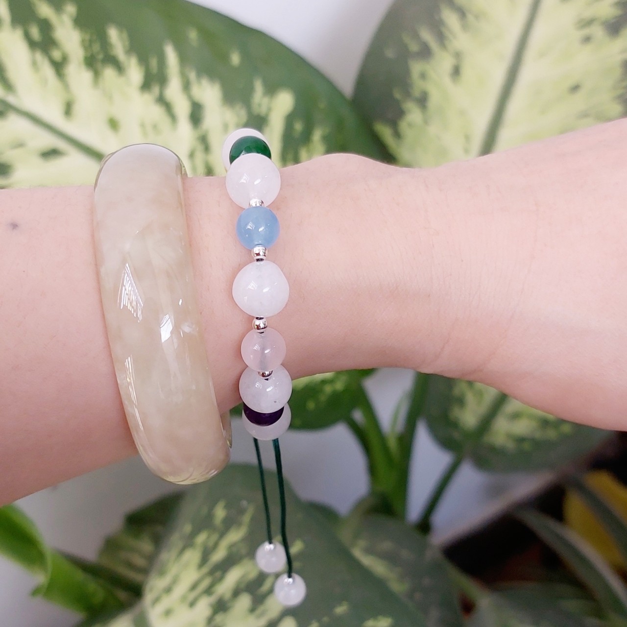 VÒNG TAY ĐÁ CHALCEDONY : Chalcedony sở hữu hoa văn và màu sắc đặc biệt cùng hiện tượng tán sắc vô cùng thú vị, rất ít xuất hiện ở những loại đá khác. Vòng tay Đá Chalcedony mang đến điềm lành, giúp nuôi dưỡng và ổn định tinh thần lẫn tình cảm ở chủ nhân, là món quà mà bất kì ai cũng mong muốn sở hữu. CÔNG DỤNG VÀ Ý NGHĨA CỦA ĐÁ CHALCEDONY: - Về mặt phong thủy - Chalcedony là viên đá của niềm vui, sự hân hoan và đức tính trung thực ở con người. - Kích thích sự hưng phấn, cảm giác lạc quan, yêu đời ở người đeo, dẫn lối cho họ đến thành công. - Lan tỏa nguồn năng lượng tích cực, giúp chủ nhân thu hút nhiều may mắn và tiền bạc trong cuộc sống. - Về mặt sức khỏe - Chalcedony giúp cân bằng và ổn định cảm xúc, được ứng dụng để phòng chứng trầm cảm, rối loạn tiến đình và một số vấn đề liên quan đến thần kinh khác. - Đeo đá thường xuyên sẽ giúp bạn có giấc ngủ ngon và tràn đầy năng lượng cho một ngày mới. - Hợp mệnh - Chalcedony tím phù hợp với người mệnh Hỏa (theo tương hợp) và mệnh