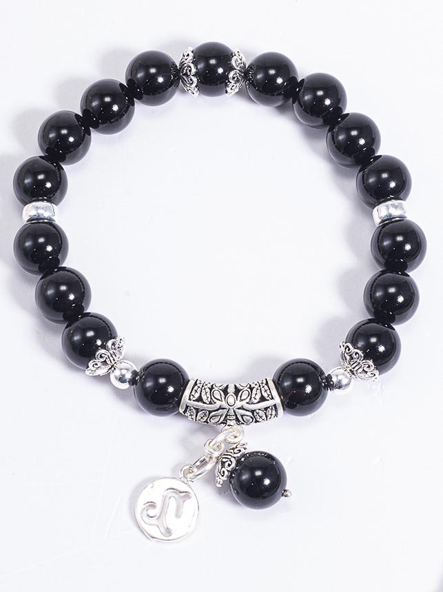 Vòng Tay Phong Thủy Đá Obsidian Phối Charm Cung Hoàng Đạo Ma Kết (8mm) Mệnh Thủy, Mộc