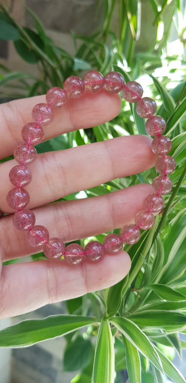 Vòng tay phong thủy đá THẠCH ANH DÂU HỒNG size hạt 8mm tự nhiên là sản phẩm phong thủy với chất liệu Thạch Anh giúp mang lại may mắn, tốt cho sức khỏe và công việc cho người đeo.