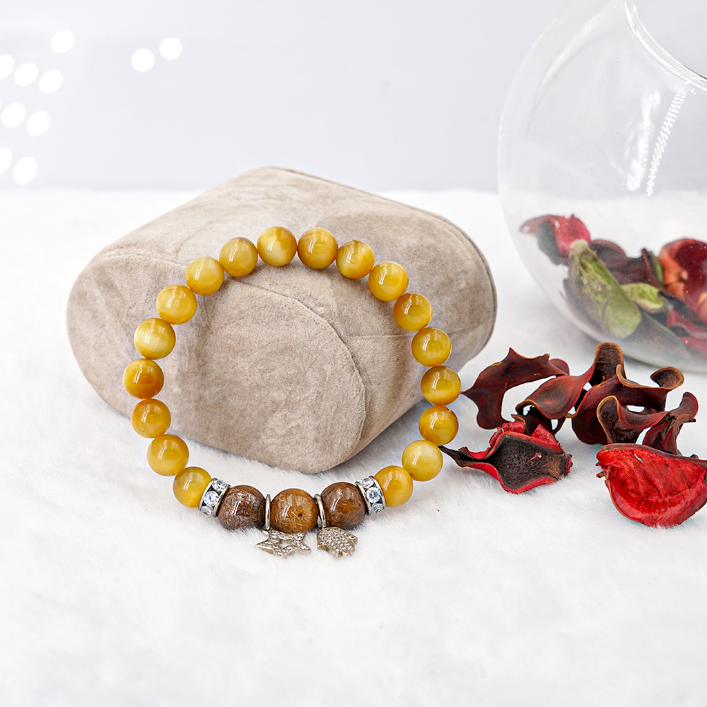 Đá mắt hổ vàng là một biến thể của đá thạch anh – một loài hộ thân tuyệt vời. Nó phù hợp với tất cả mọi người nhưng đặc biệt mà những người bị yếu tinh thần, thiếu tự tin, có cảm giác lo lắng nhiều hơn người bình thường. Với màu vàng thanh lịch, nó phù hợp cho cả phụ nữ và cả đàn ông. Nhưng nó sẽ phát huy công dụng rõ ràng nhất khi được đeo vào tay của những người thuộc mệnh Thổ và mệnh Kim.