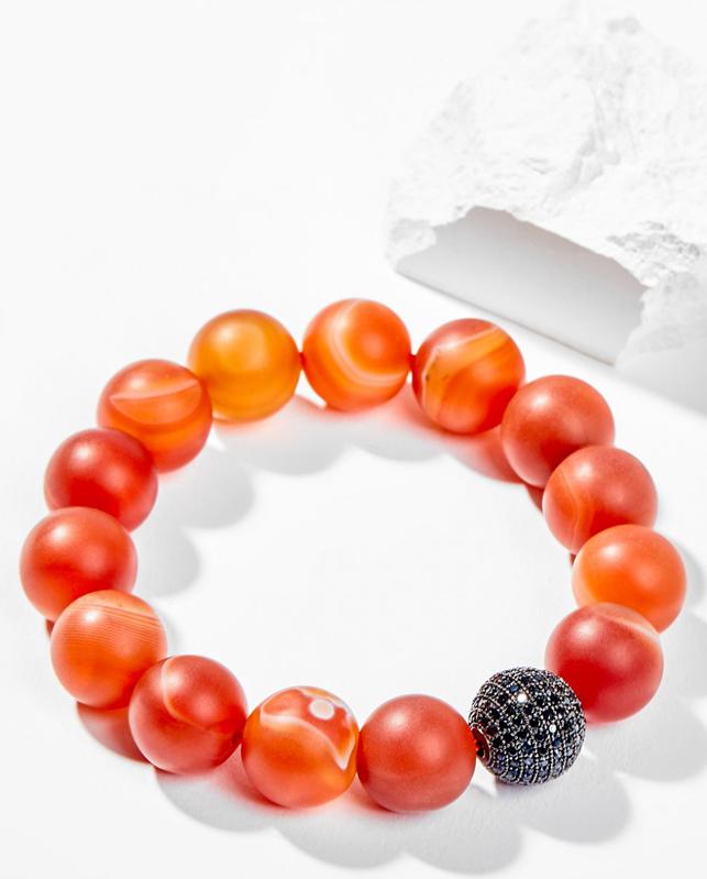 Vòng Tay Phong Thủy Nam Đá Mã Não Đỏ Nhám Phối Charm Cầu Đính Đá (14mm) Mệnh Hỏa, Thổ Từ lâu người ta đã biết đến đá Mã não như là tiếng gọi của thiên