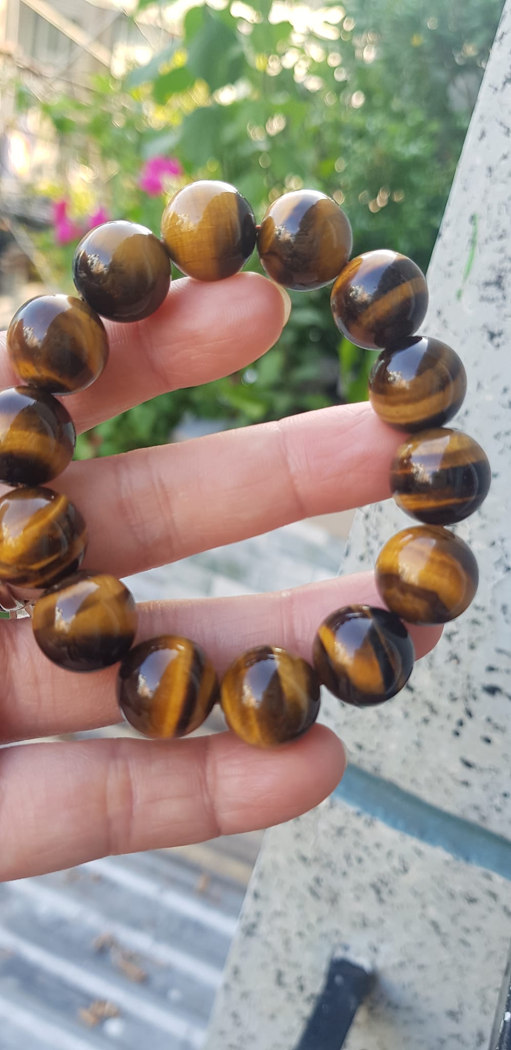 ✨Vòng tay phong thủy Nam Đá Mắt Hổ Vàng Nâu Đậm bóng đẹp Size 4mm hay 14li gồm 14 hạt Hợp nam mệnh thổ mệnh kim ạ
