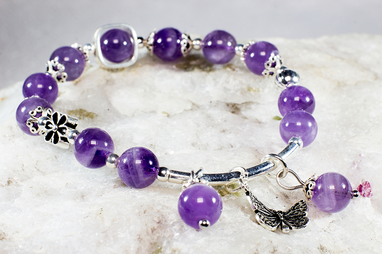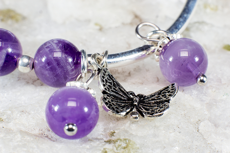 Một chiếc vòng với 6 viên 8.5m và 3 viên 10.5mm thạch anh tím Amethyst thiên nhiên huyền bí, được mix với bộ charm freestyle bạc 92.5% tinh xảo. Mang lại cho bạn những sự may mắn và dáng vẻ cực kỳ quý phái, lắc nhẹ theo từng cử động nhỏ của bạn, thu hút mọi ánh nhìn.