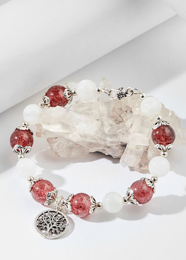 ✨Vòng tay thạch anh dâu mix ưu linh trắng Ngọc Quý Gemstones