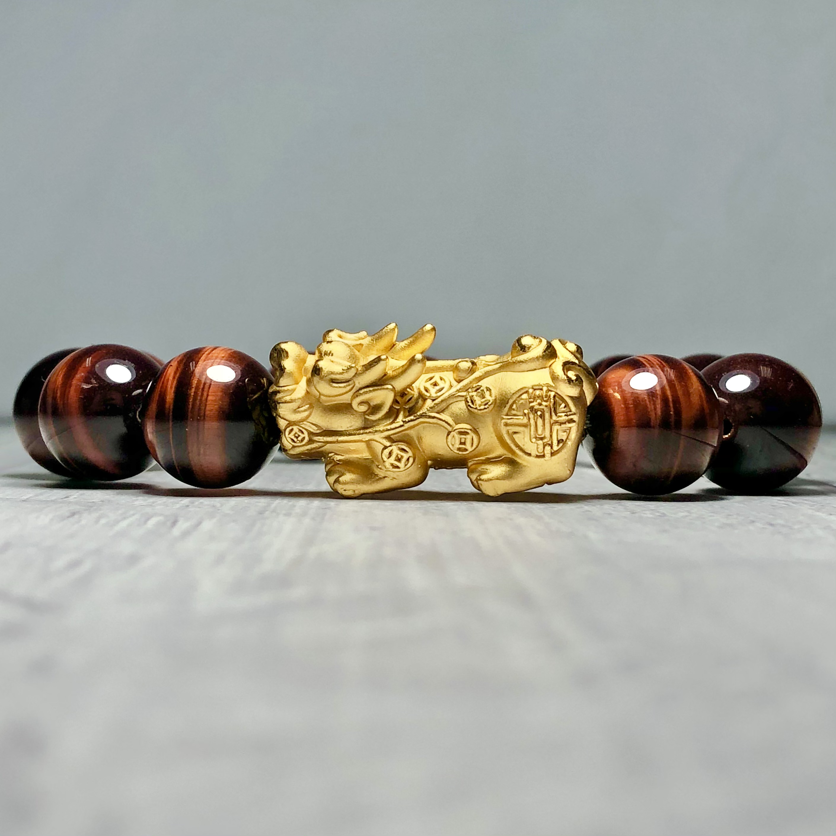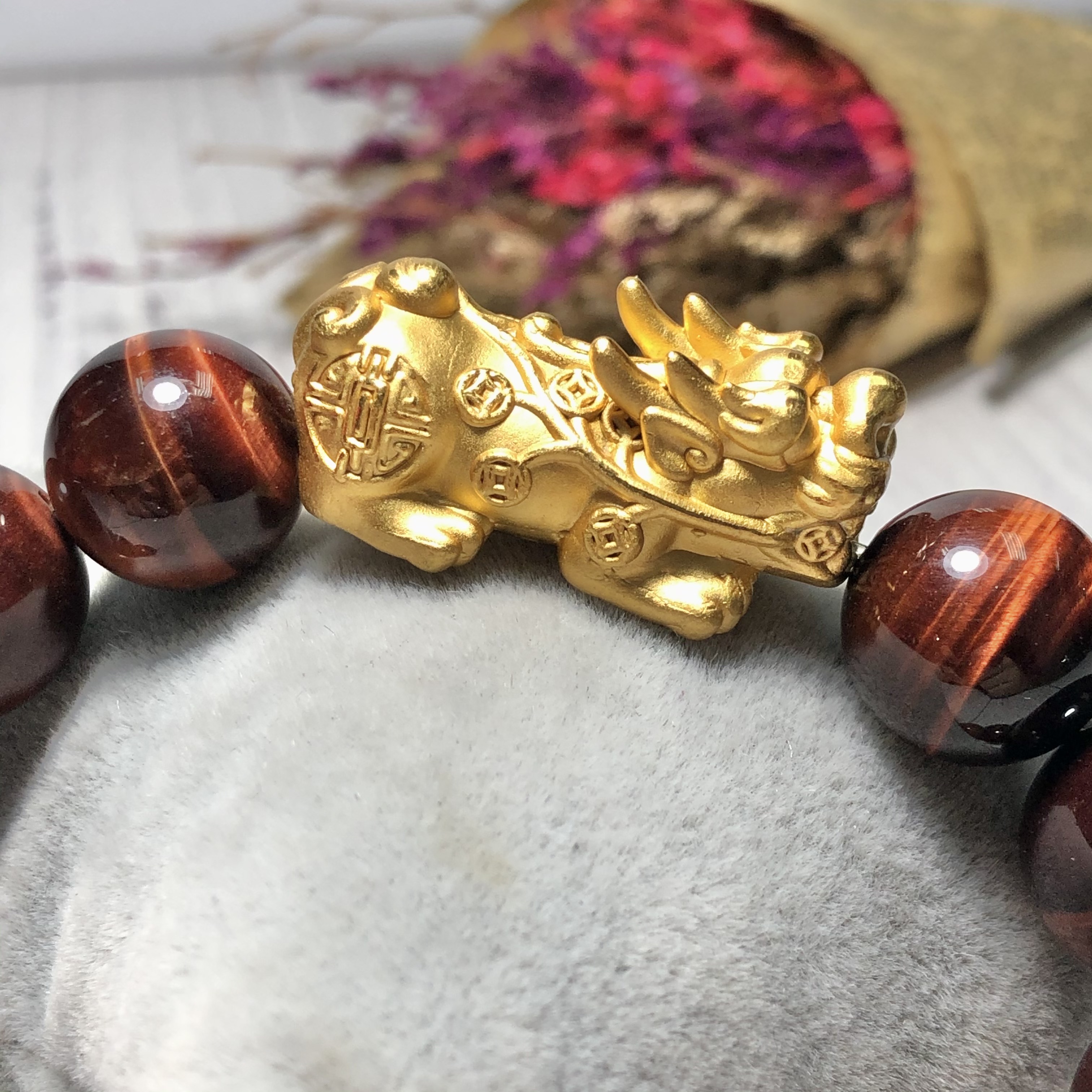 Vòng tay Thạch Anh Mắt Hổ nâu đỏ 14mm mix tỳ hưu bạc Loại trang sức: vòng đá phong thủy kết hợp charm bạc - Xuất xứ: Brazil - Kích thước: 14mm - Chuẩn đá: 5A - Kiểu dáng: vòng hạt