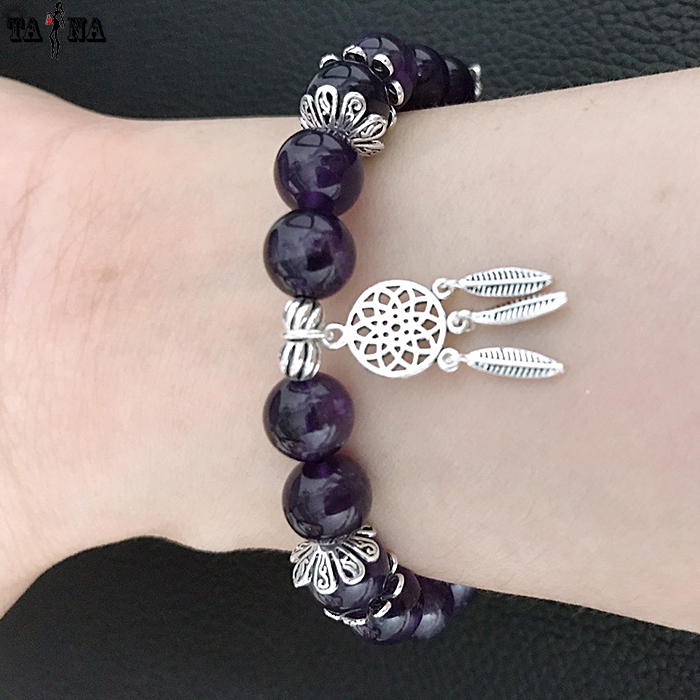 Vòng tay đá thạch anh tím mix charm bạc 925 cao cấp rất phù hợp với những người mệnh Hỏa và mệnh Thổ