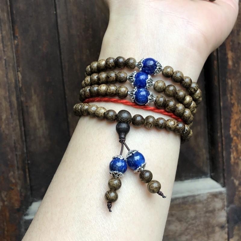 ✨Vòng Tay Trầm Hương phối Đá Xanh Kyanite cùng charm bạc thái - bình an, may mắn, tài lộc