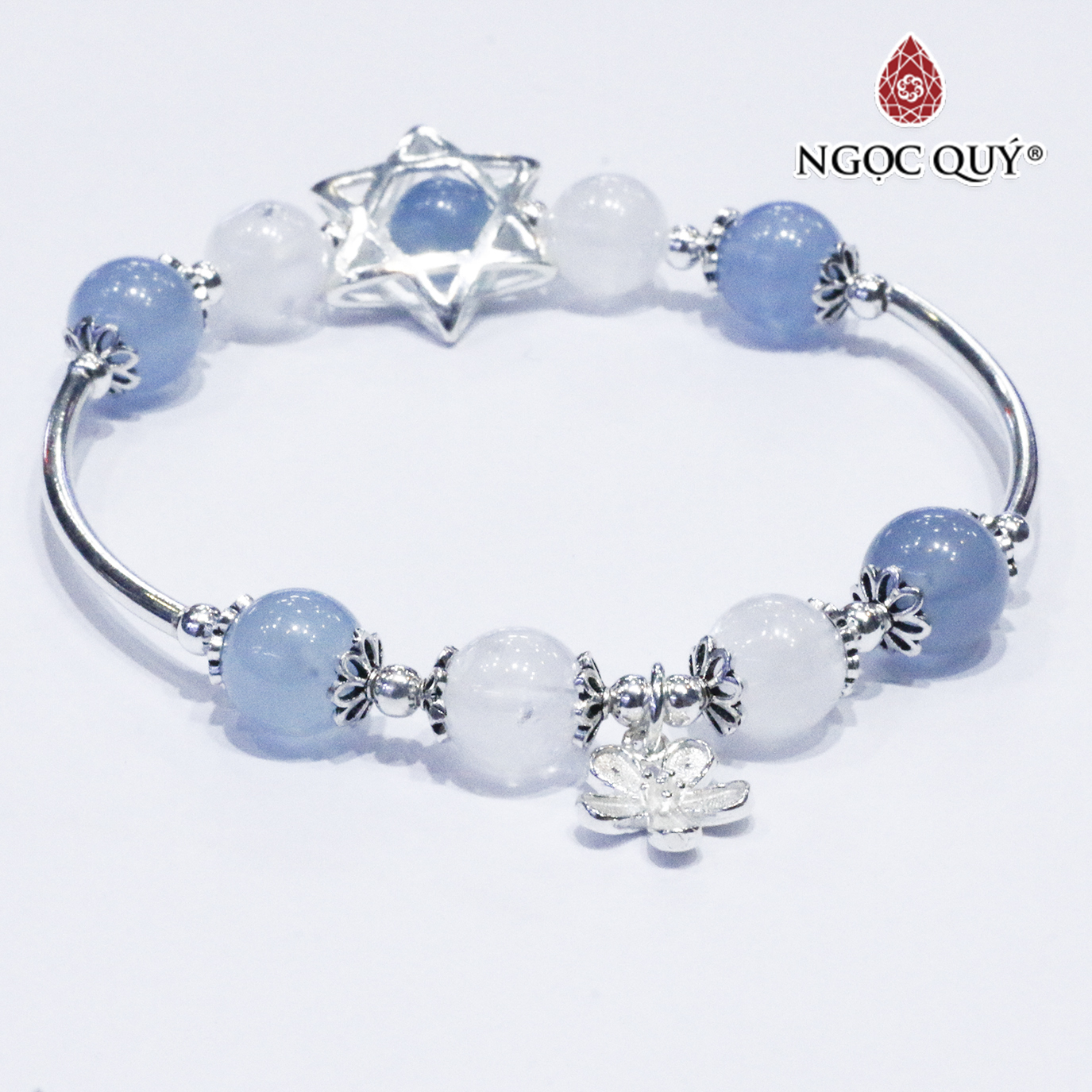 VÒNG TAY THẠCH ANH ƯU LINH TRẮNG PHỐI AQUAMARINE