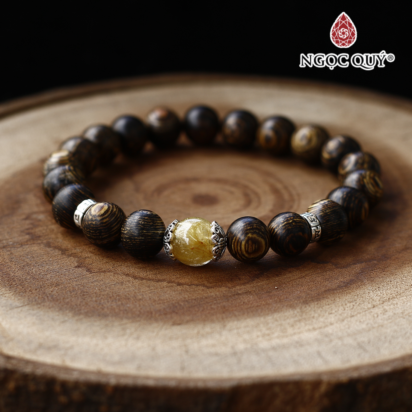 ✨Vòng trầm sánh tròn 8mm phối đá thạch anh tóc vàng - Ngọc Quý Gemstones