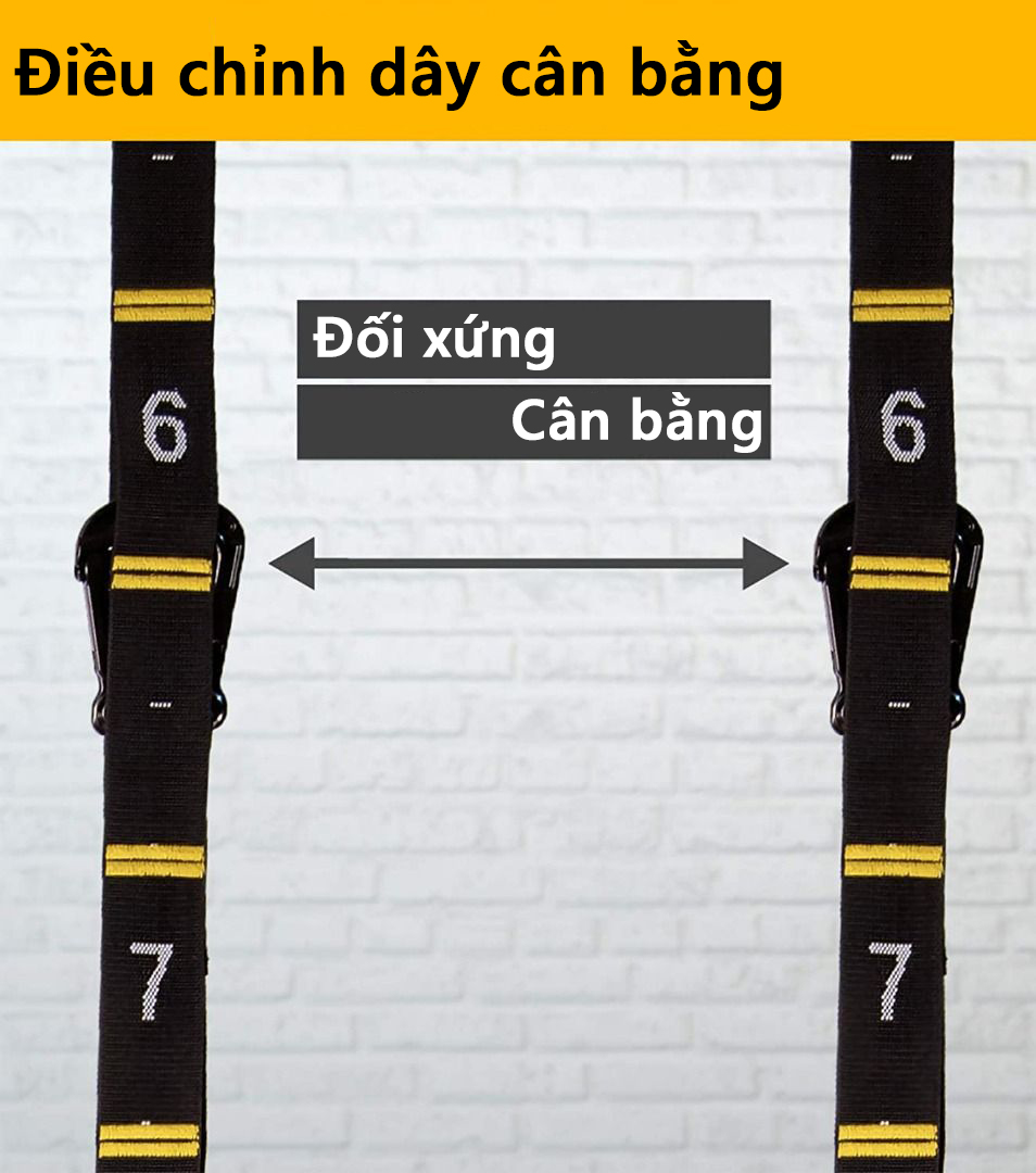 Bộ bao gồm : 2 vòng treo gỗ, 2 dây treo polyester ( dài 4.5 m ) , 2 khóa dây