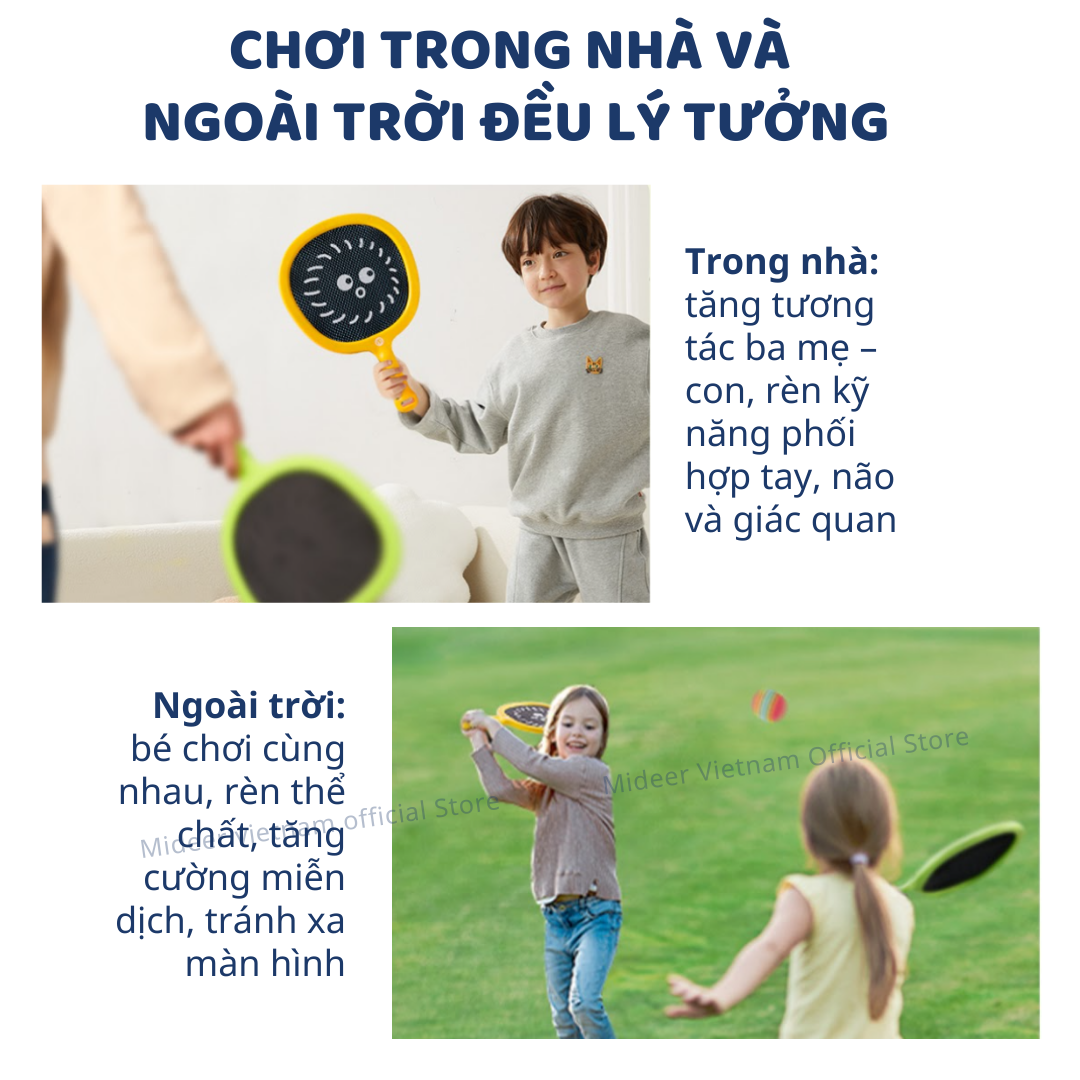 "CHÀO MỪNG BẠN ĐẾN VỚI MIDEER VIETNAM HÀNG SẴN SHIP HỎA TỐC, BẢO HÀNH CHÍNH HÃNG ————————————— Vợt cầu lông cho bé Mideer Kids Junior Racket, đồ chơi thể thao cho bé Vợt cầu lông Mideer Kids Junior Racket là lựa chọn hoàn hảo cho trẻ em bắt đầu làm quen với thể thao! Thiết kế đặc biệt với bề mặt vợt rộng, cạnh bo tròn an toàn và trọng lượng nhẹ, giúp bé dễ cầm nắm và sử dụng, nhất định là người bạn đồng hành giúp con luôn năng động khỏe mạnh. 10 Lý do ba mẹ nên chọn Vợt cầu lông cho bé Mideer Kids Junior Racket, đồ chơi thể thao cho bé