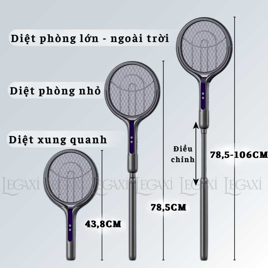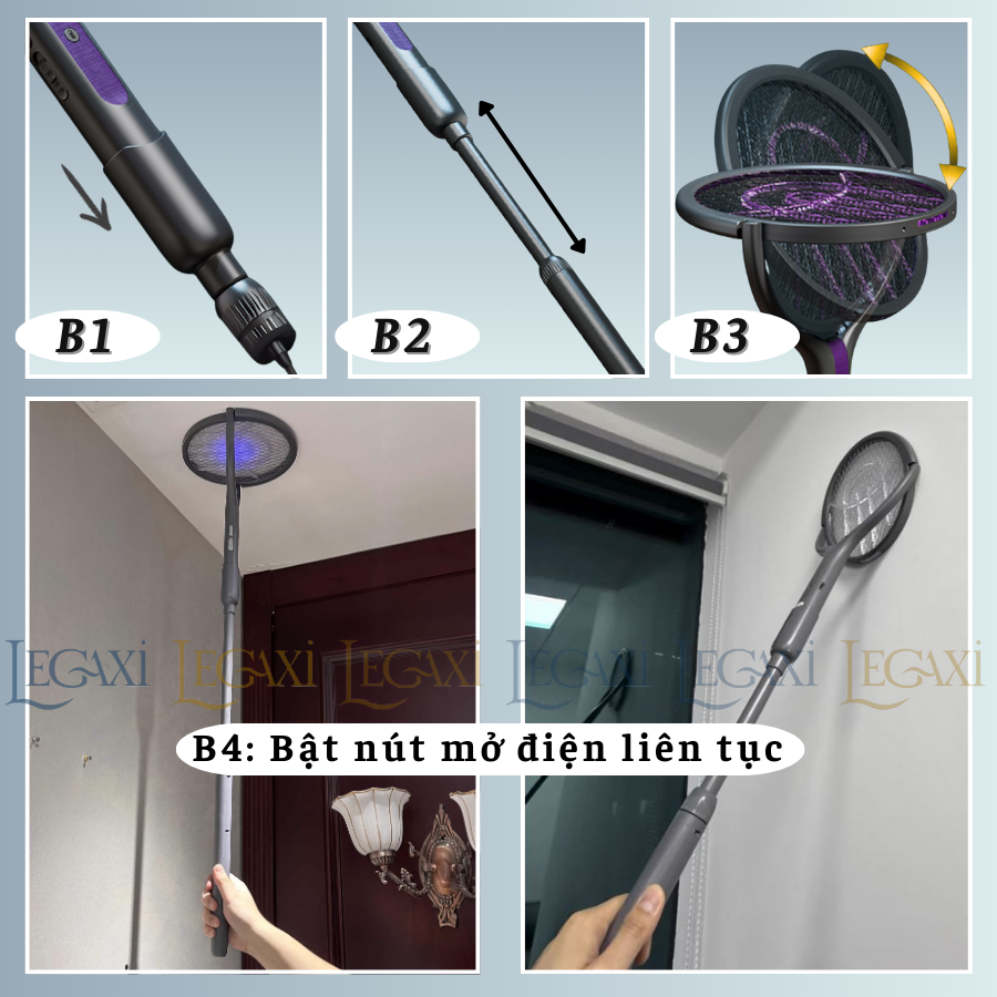 Diệt nhiều muỗi hơn: Tay cầm kéo dài đến 106cm, bắt muỗi trên cao, trần nhà không cần leo trèo.