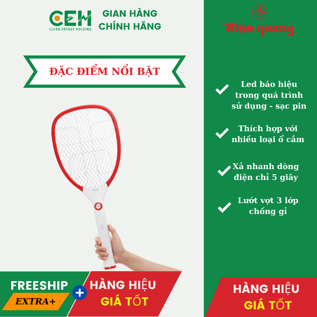 Vợt muỗi Điện Quang ĐQ EMR01 BLR (Pin Lithium, Đen - đỏ) - Chống giật siêu an toàn, xả nhanh dòng điện chỉ trong 5 giây - Đèn Pin chiếu sáng thiết kế hiện