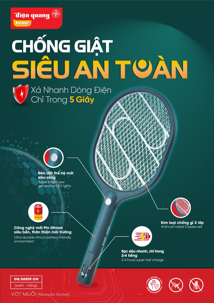 Review vợt muỗi Điện Quang ĐQ EMR09 GW giá 100k.