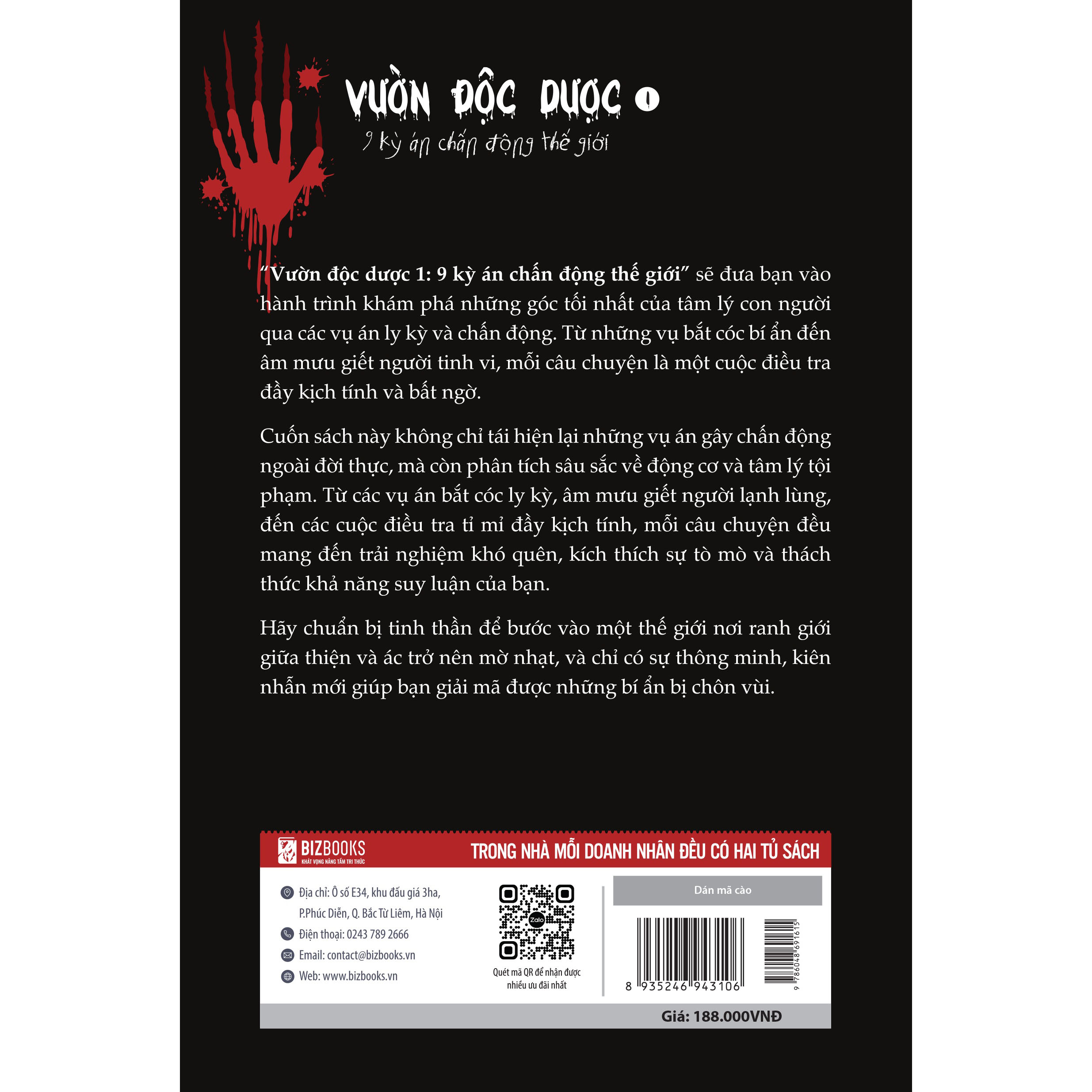 Dành cho những người yêu thích trinh thám, quan tâm đến tâm lý học, nghiên cứu về tội phạm, “Vườn độc dược 1: 9 kỳ án chấn động thế giới" một tài liệu quý giá mà bạn không nên bỏ qua. 304 Trang cung cấp những cái nhìn sâu sắc về động cơ và hành vi của tội phạm, đồng thời giúp người đọc hiểu rõ hơn về các yếu tố xã hội và tâm lý có thể dẫn đến những hành vi lệch lạc. Qua mỗi vụ án, độc giả sẽ thấy được sức mạnh và giới hạn của tâm lý con người, cũng như những biến đổi khôn lường có thể dẫn đến những thảm kịch kinh hoàng.