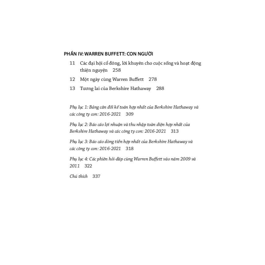 Sách - Warren Bufett Nhà Đầu Tư Và Doanh Nhân Khởi Nghiệp Warren Buffett có thể được coi là nhà đầu tư thành công nhất mọi thời đại. Là CEO và chủ tịch của Berkshire Hathaway, ông được ngưỡng mộ không chỉ vì thành tích trong lĩnh vực tài chính mà còn cả vì triết lý đầu tư của mình. Nhưng có một điều ít người biết về Warren Buffett là tuy là một nhà đầu tư nổi tiếng, nhưng một trong những bí quyết thành công của ông chính là điều hành Berkshire Hathaway với tinh thần khởi nghiệp. Trong cuốn sách này, tác giả Todd A. Finkle, một người bạn lâu năm của gia đình Buffett, sẽ cung cấp cho bạn những góc nhìn mới mẻ về sự nghiệp của Buffett trong tư cách một nhà đầu tư và doanh nhân khởi nghiệp. "Warren Buffett: Nhà đầu tư và doanh nhân khởi nghiệp" không chỉ chia sẻ câu chuyện hấp dẫn về thuở đầu lập nghiệp và những dự án kinh doanh của Buffett mà còn ghi lại những thương vụ đầu tư đã làm nên sự nghiệp của ông, từ việc bán kẹo cao su đến từng nhà thời thơ ấu đến thành lập Berkshire Hathaway và phát triển nó thành một tập đoàn toàn cầu như ngày nay. Finkle còn xem xét phương pháp đầu tư, chiến lược quản lý và triết lý quản trị của Buffett. Ngoài ra, ông cũng không quên người cộng sự lâu năm của Buffett, Charlie Munger, và những đóng góp của Munger cho thành công của Berkshire. Bên cạnh đó, cuốn sách cũng rút ra những bài học từ những sai lầm trong đầu tư của Buffett, và thông qua những thất bại này khám phá cách thay đổi hành vi, khắc phục thiếu sót và thiên kiến trong đầu tư. Không chỉ điều hành Berkshire Hathaway, Buffett còn nổi tiếng với việc làm từ thiện, lối sống giản đơn, cũng như những triết lý sống đề cao sự liêm chính và sống có ý nghĩa. Bên cạnh phương pháp đầu tư và kinh doanh, ta còn có thể học hỏi về ông với tư cách một con người, và cuốn sách đã không bỏ qua điều này. Từ việc nuôi dạy con cái, những cuộc gặp gỡ thường niên với sinh viên các trường đại học đến những phong trào từ thiện do ông đi đầu, bạn có thể tìm thấy thêm nhiều niềm cảm hứng từ ông.