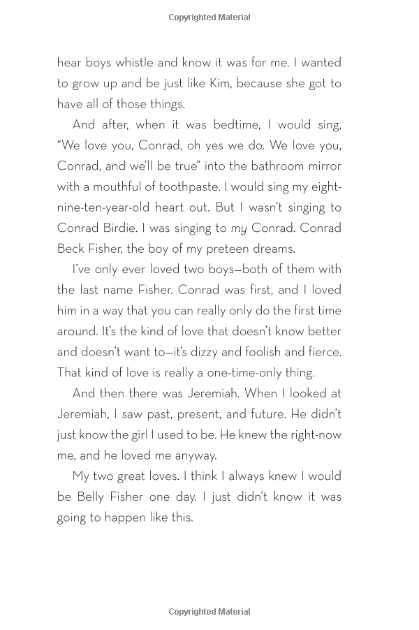 Belly has only ever been in love with two boys, both with the last name Fisher. And after being with Jeremiah for the last two years, she’s almost positive he is her soul mate. Almost. While Conrad has not gotten over the mistake of letting Belly go, Jeremiah has always known that Belly is the girl for him. So when Belly and Jeremiah decide to make things forever, Conrad realizes that it’s now or never-tell Belly he loves her, or lose her for good.