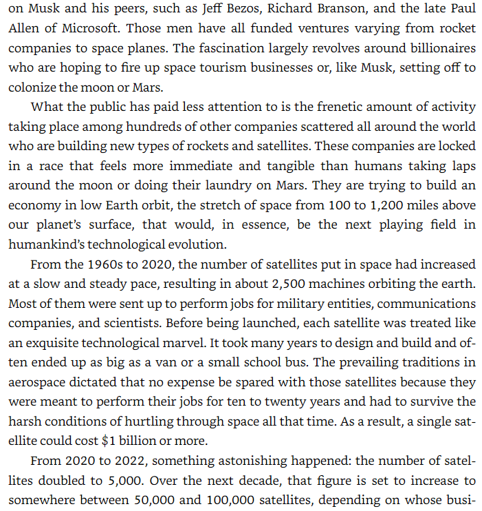 Ashlee Vance follows four pioneering companies - Astra, Firefly, Planet Labs and Rocket Lab - as they race to control access to outer space. While the space tourism ambitions of billionaires such as Bezos and Branson make headlines, these under-the-radar companies are striving to monetise Earth's lower orbit; to connect, analyse and monitor everything on Earth.