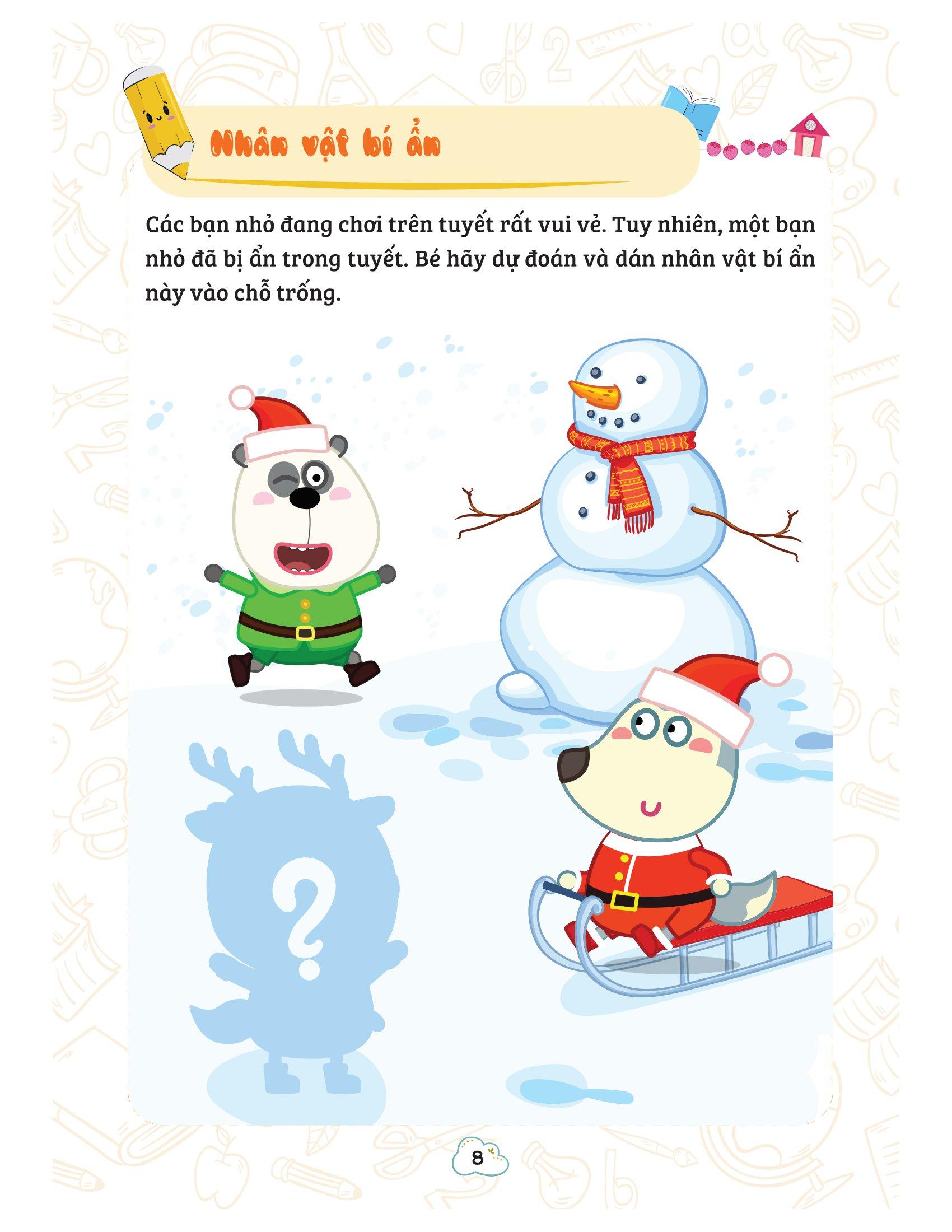Các đơn vị bài học đều được chia thành các chủ điểm kết hợp với các hoạt động thú vị như tập đếm, trả lời câu hỏi, ghép tranh, thực hành với hệ thống bài tập tương tác kết hợp dán sticker, tô màu theo phương pháp từ đơn giản tới phức tạp để giúp trẻ phát triển toàn diện khả năng tư duy logic, suy luận, đánh giá tổng quát và chi tiết từng vấn đề.