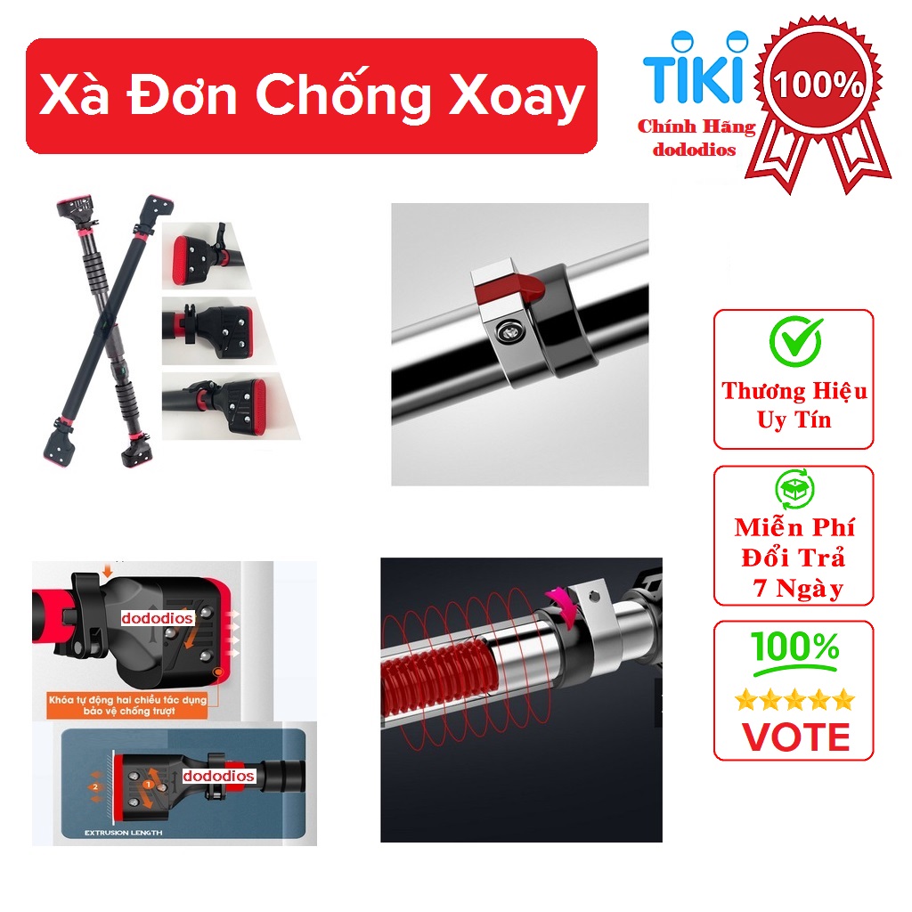 XÀ ĐƠN GẮN CỬA TREO TƯỜNG BẰNG THÉP CHỊU LỰC CHÍNH HÃNG THƯƠNG HIỆU UY TÍN CHẤT LƯỢNG DODODIOS Bạn muốn có một thân hình đẹp nhưng bạn không có thời gian đi đến các phòng tập Gym? Bạn muốn thực hiện các bài tập xà đơn để có được một thân thể khỏe mạnh nhưng không có thời gian đến công viên hoặc sân thể thao để luyện tập? Bạn muốn mua xà đơn gắn cửa để tự tập luyện mà không biết mua ở đâu? Đừng lo lắng, chúng tôi sẽ giúp bạn giải quyết vấn đề này. Đó là hãy sử dụng xà đơn gắn cửa, xà đơn treo tường do cửa hàng chúng tôi cung cấp. Đây là sản phẩm đang được nhiều các bạn trẻ hiện nay sử dụng để đối phó với cuộc sống bận rộn của mình. Xà đơn treo tường DODODIOS là mẫu mới năm MỚI đã được cải tiến, sửa đổi những khuyết điểm của mẫu xà cũ thông thường. Nhờ bề mặt tiếp xúc với tường rộng hơn, xà bám chắc nhưng không làm hỏng kết cấu tường, đồng thời tăng mức độ an toàn khi tập luyện. Với sản phẩm này bạn có thể lắp xà đơn tại nhà mà không phải đến công viên hay phòng tập Gym nào khác.