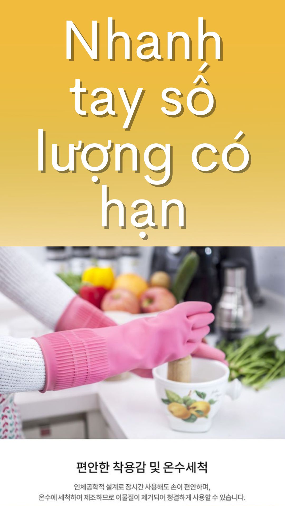 Găng tay cao su rửa chén nhà bếp xuất Hàn Quốc - Thương hiệu: Hàn Quốc - Xuất sứ thương hiệu: Hàn Quốc - Sản xuất tại: Việt Nam - Thông số