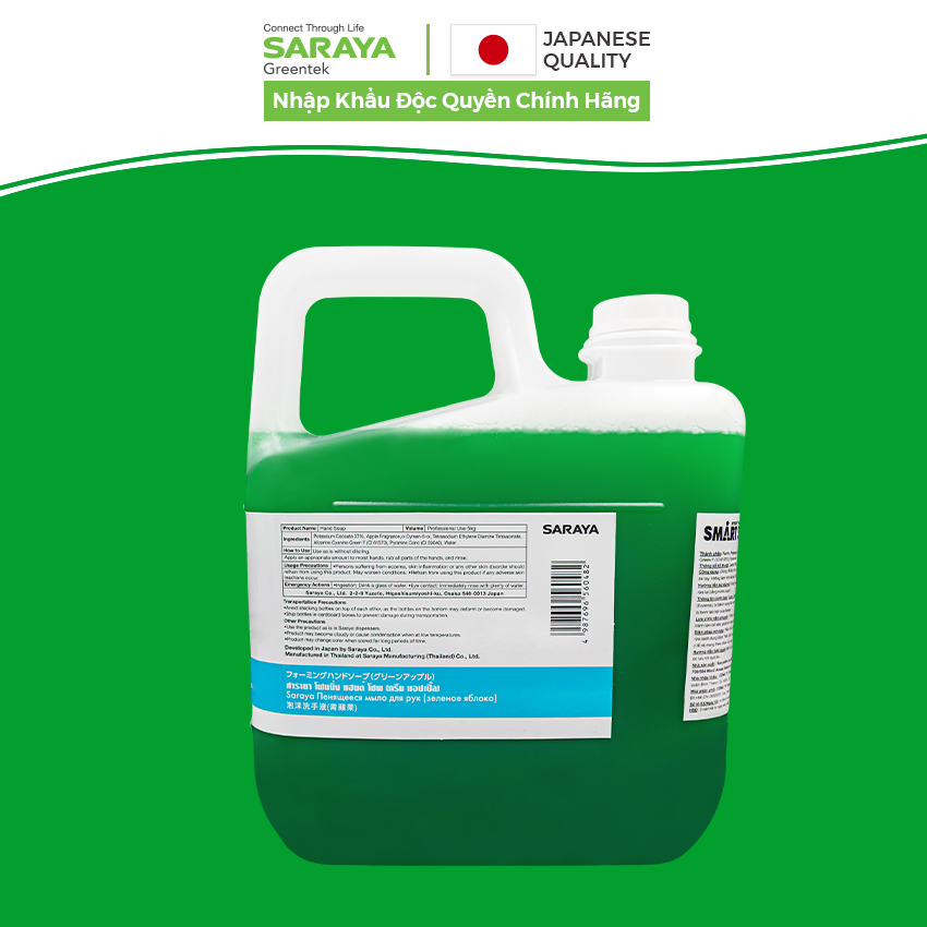 ✨Xà Phòng Rửa Tay Sát Khuẩn Saraya Foaming Hand Soap (Green Apple), Hương Táo - Can 5Kg