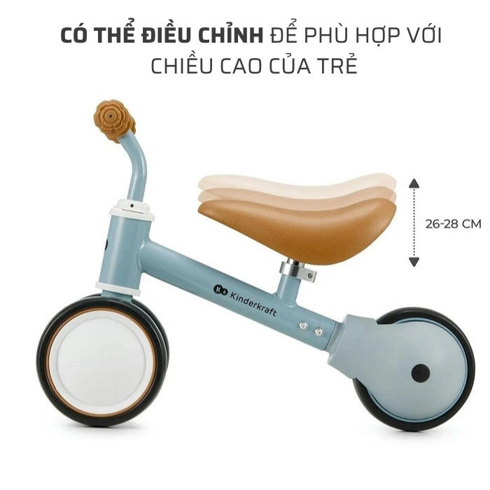 • Chiều cao yên xe có thể được điều chỉnh bằng khóa Allen (phạm vi từ 26 - 28 cm), giúp điều chỉnh phù hợp với từng giai đoạn phát triển của bé • Khung