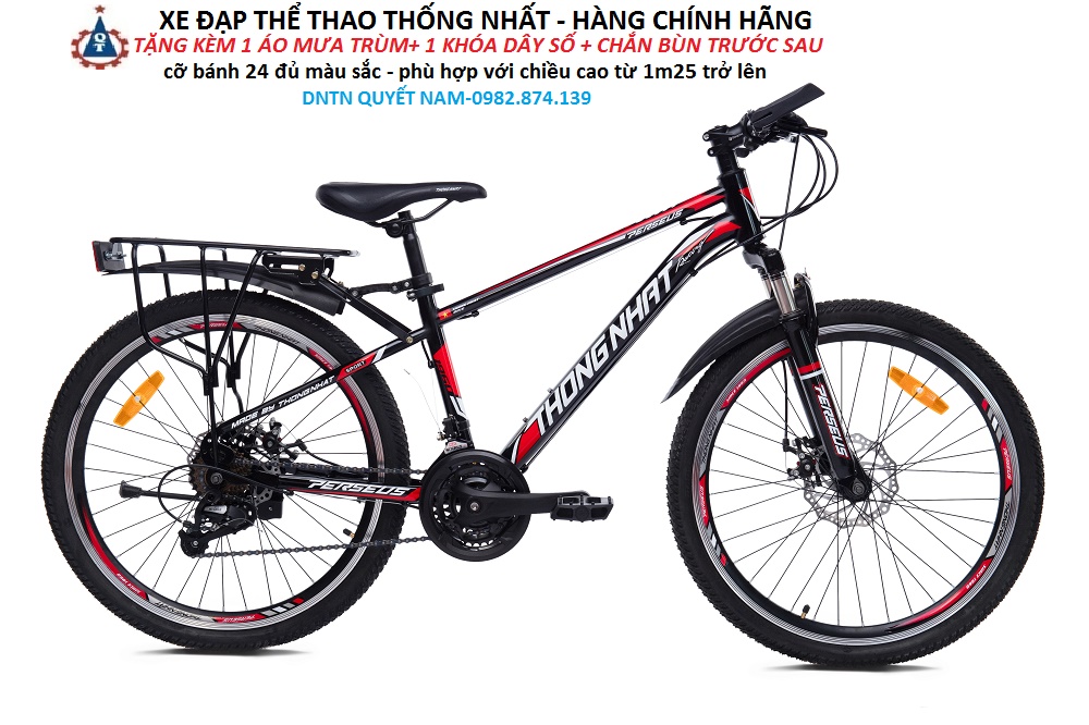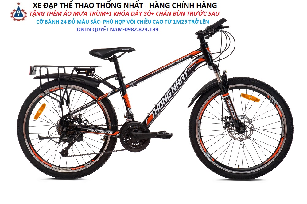 CÁC THÔNG TIN XUẤT XƯỞNG- TEM CHỐNG HÀNG GIẢ-PHIẾU BẢO HÀNH=>ĐẢM BẢO HÀNG CHÍNH HÃNG TỚI TAY NGƯỜI TIÊU DÙNG THÔNG SỐ KỸ THUẬT xe Cỡ khung: 24 inches Khung sườn: Thép chịu lực cao cấp Phuộc: Thép chịu lực cao cấp Tay phanh: Đài Loan Xích: 92 mắt Vành: Hợp kim Lốp: Cao su, 24 inches Pô tăng: Nhôm Cọc yên: Nhôm Yên: Giả da cao cấp Bàn đạp: Nhựa Xuất xứ: Việt Nam Hãng sản xuất: Thống Nhất