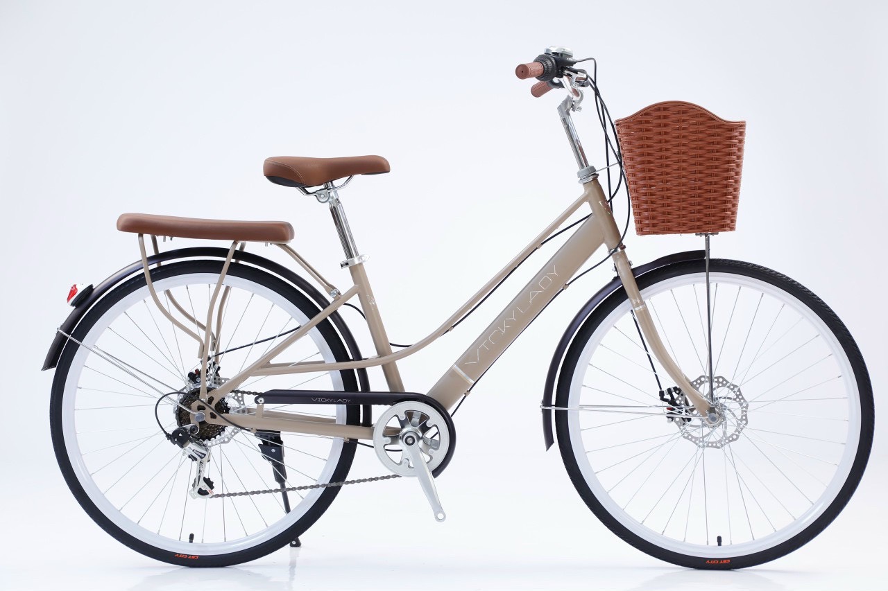 Xe đạp VICKY Lady là mẫu xe nhập khẩu nguyên chiếc với chất lượng ổn định và giá rẻ nhất phân khúc nên được rất nhiều khách hàng tin tưởng lựa chọn . Xe sử dụng khung thép sơn tĩnh điện thiết kế vô cùng là đẹp mắt đường nét tinh tế, hợp thời trang. Kích cỡ 26 Màu sắc Trắng . Ghi . Đen . Nâu . Hồng Khung: Hợp kim thép Càng phuộc xe Phuộc Đơ / Thép Tay lái Thép Pô tăng Nhôm Cọc yên Nhôm Yên xe Da mềm Baga Thép Chắn bùn Thép Phanh Phanh đĩa cơ Tay đề cho SHIMANO Revoshift 7 Speed Gạt líp cho SHIMANO TOURNEY TY21B Đùi đĩa Thép Líp 7 tầng Vành xe Vành hợp kim nhôm Lốp 26x1.50