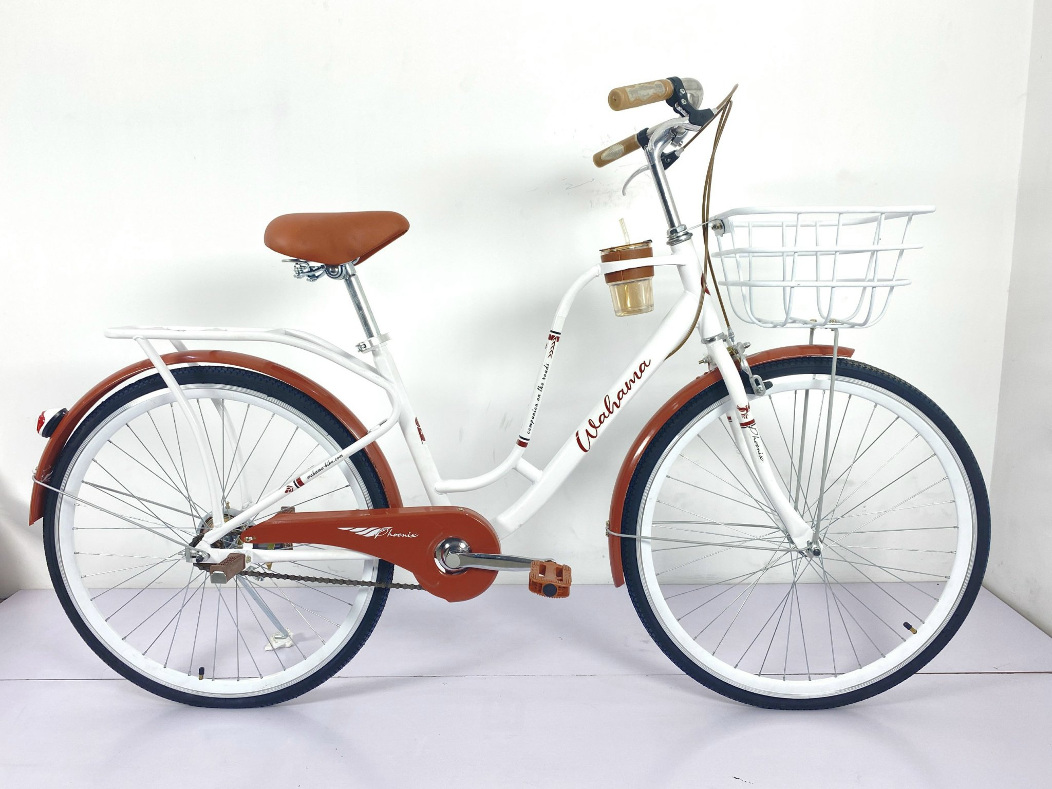 Cấu Hình Xe Đạp Mini Nữ Phoenix Wahama: – Khung làm từ hợp kim thép cao cấp, phủ lớp sơn tĩnh điện. -Bình Nước Cao Cấp có ống hút – Vành làm từ hợp kim nhôm 1 lớp , vành 24-26 – Phanh V má vành trước, phanh bám trục sau. – Tay lái, Potang hợp kim Inox chịu lực. – Cốt giữa vòng bi – Lốp 24-26"inch chống nước chuẩn IP27 – Xích 92 mắt – Đùi đĩa thép cánh hoa – Chiều cao phù hợp 1m40 đến 1m70 – Cân nặng của xe 12kg