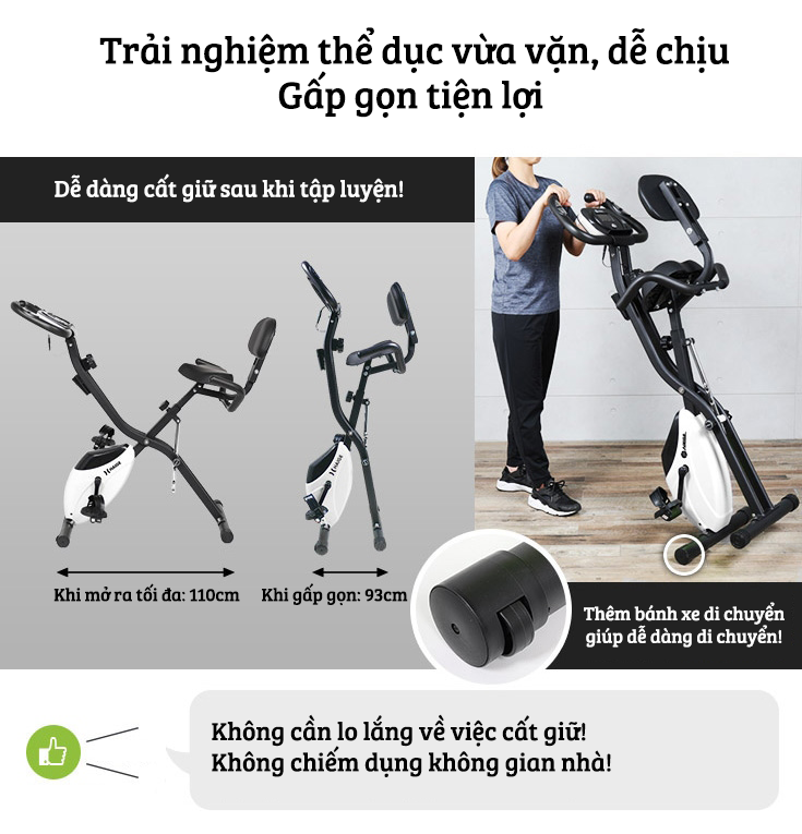 XE ĐẠP THỂ DỤC kháng lực từ êm ái, nhỏ gọn tiết kiệm không gian