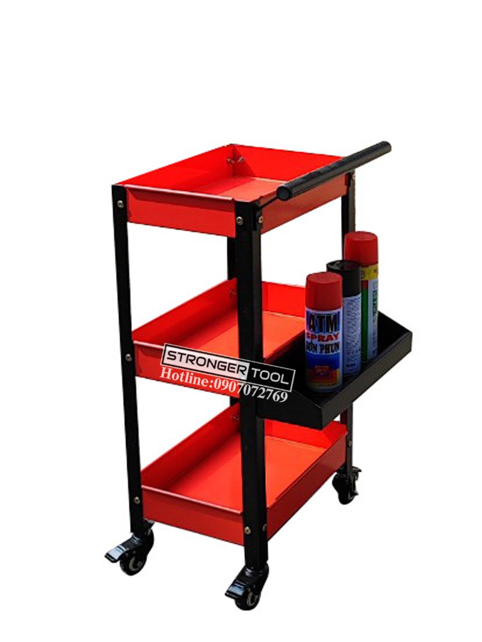 Kích thước: dài 720mm * rộng 390mm * cao 770mm Số khay: 3 khay + 1 ngăn kéo Chất liệu: thép tấm, sơn tĩnh điện Màu sắc: xanh biển, xanh chuối, đen, vàng, đỏ Khối