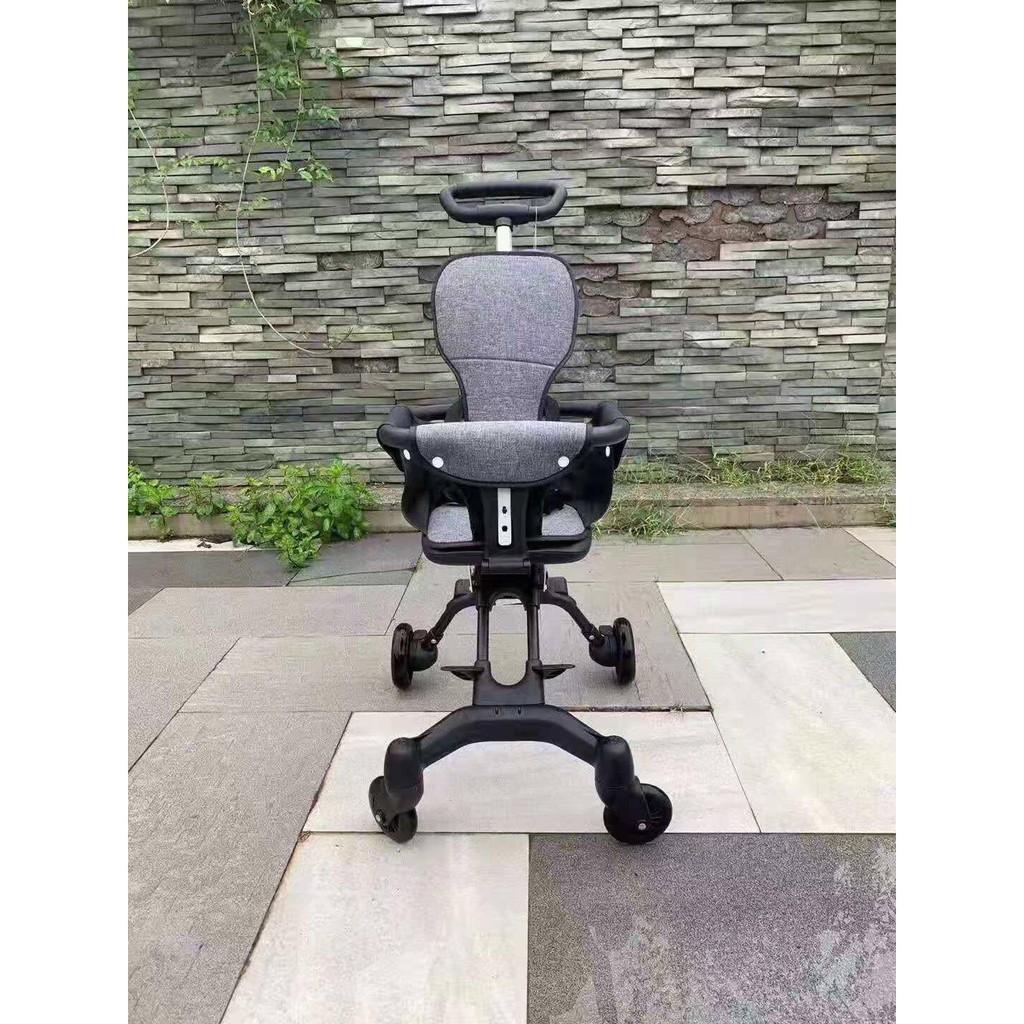 Khung xe bằng thép chịu lực nên chắc chắn, sơn tĩnh điện chống han gỉ 4 bánh xe bằng cao su mềm, 2 bánh trước có thể quay 360 độ linh hoạt dễ dàng di chuyển trên mọi bề mặt đường. Bánh sau xe vận hành êm ái, có chức năng khóa bánh sau giúp xe an toàn hơn khi không di chuyển. Ghế ngồi xoay được 2 chiều, cả 2 chiều đều có ghế để chân tiện lợi kèm đai an toàn